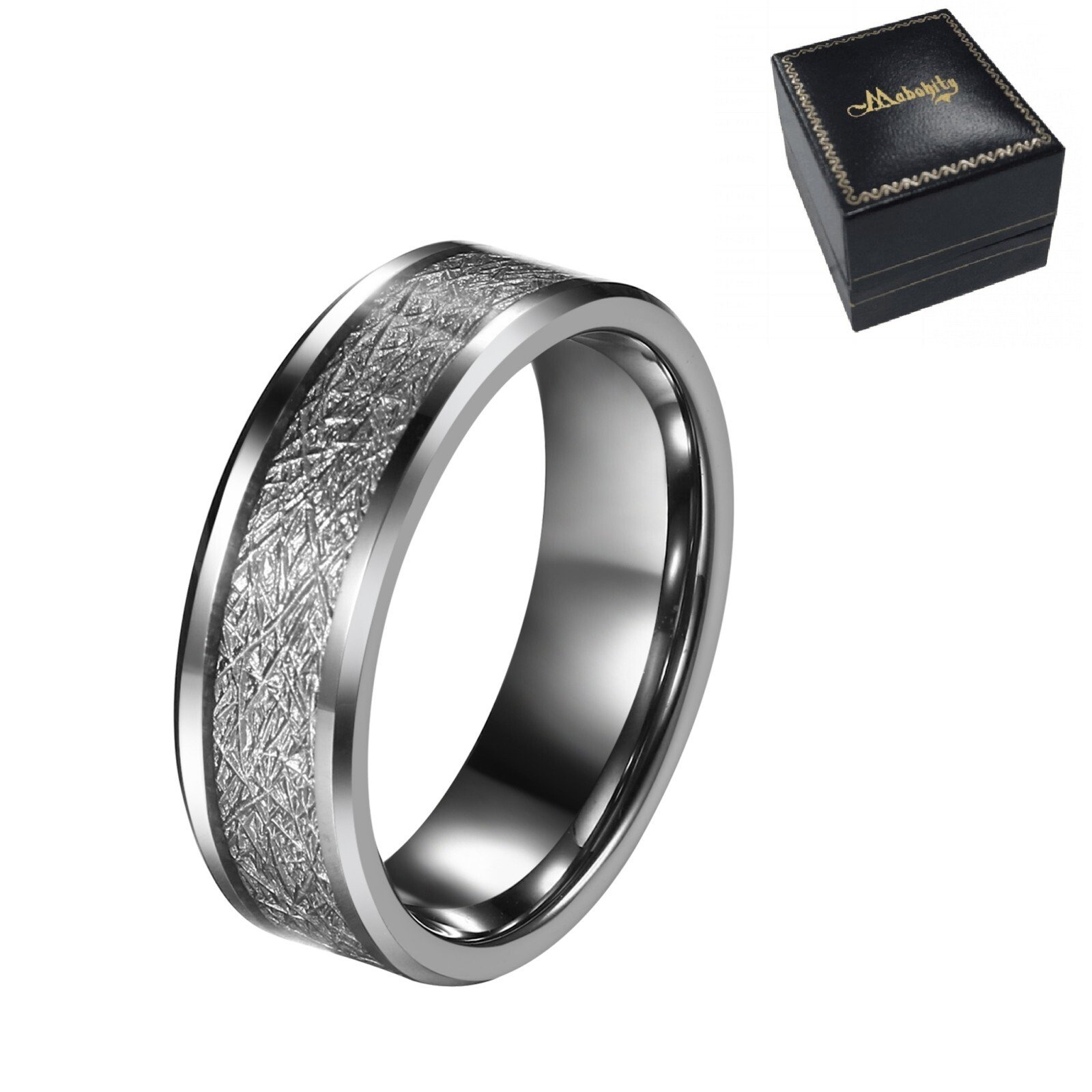 Menโ€™s 8MM Silver Tungsten Carbide Wedding Band