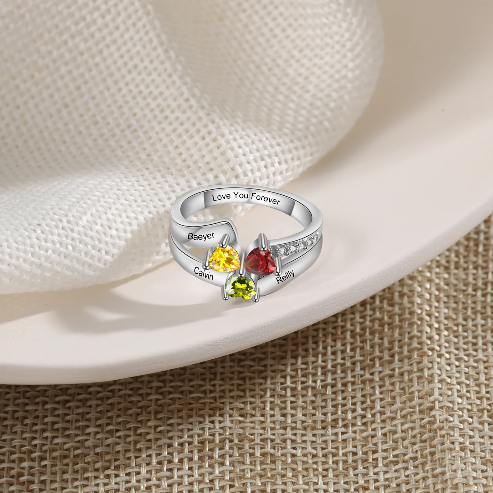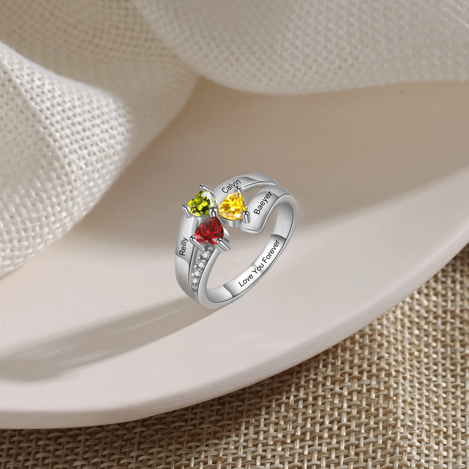| Personalized | Simulated Birthstones + Engraved Names + Inside Engraving |