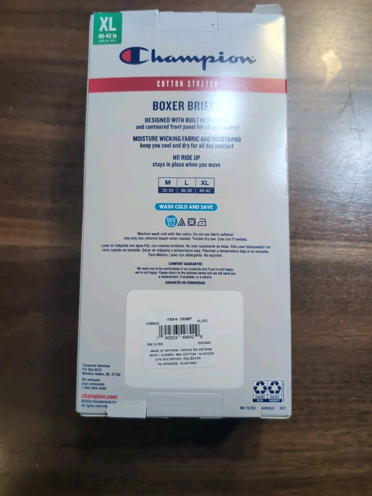 The Champion Men’s 5-Pack Cotton Stretch Boxer Briefs in Multicolor, Size XL, are a comfortable and stylish underwear option for men. Made of soft cot