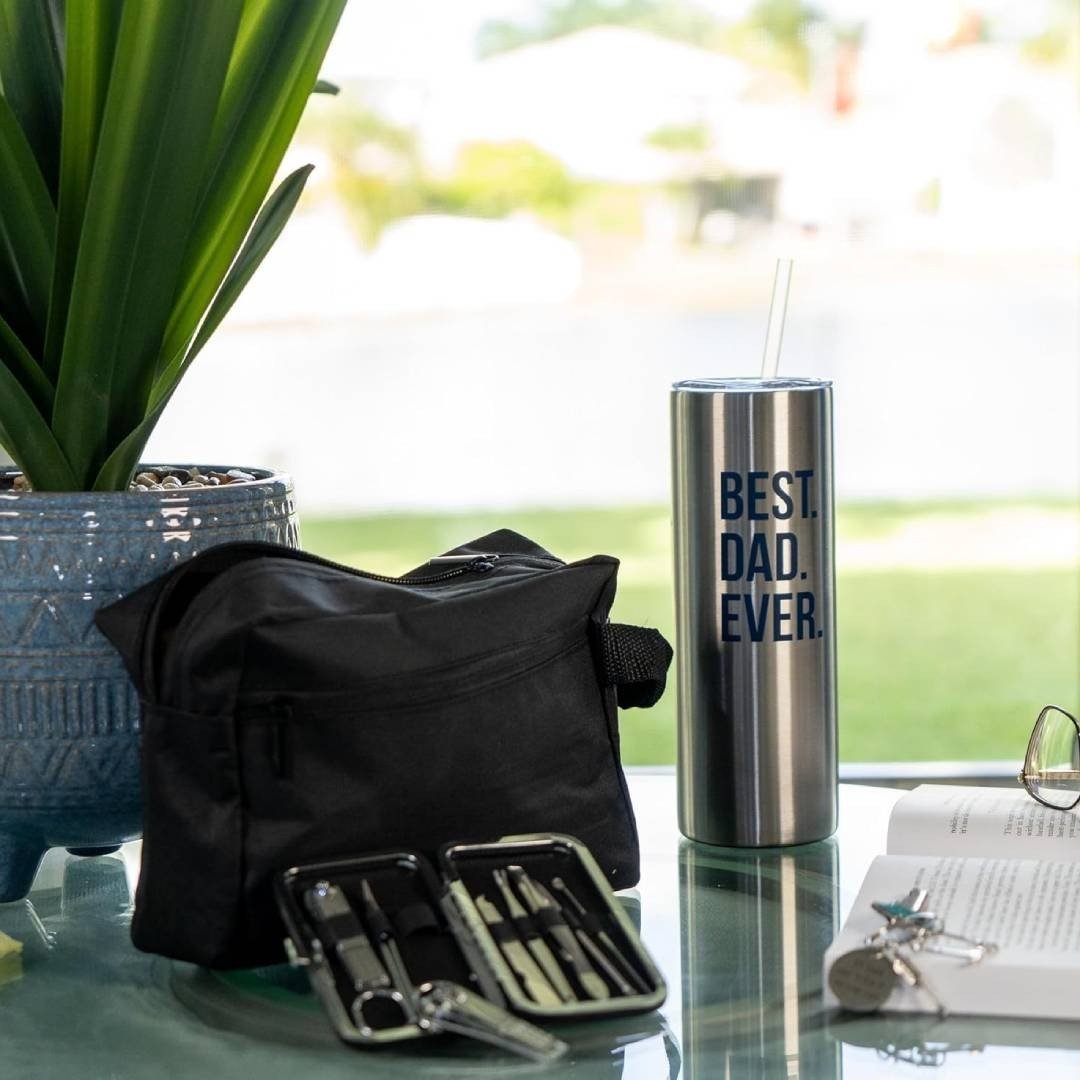Between the custom tumbler and the waterproof toiletry bag (color of your choice), this gift set is practical, stylish, and already wrapped with love. Give Dad a gift he’ll actually use and enjoy every day!
