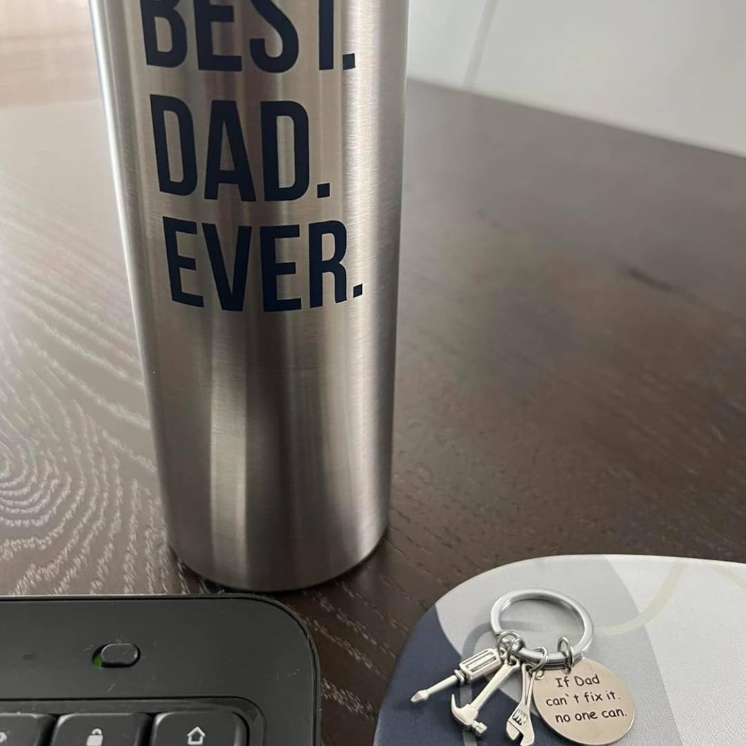 ✅ 20 oz Stainless Steel Tumbler (with Straw) – Double-wall vacuum insulated tumbler keeps drinks hot for 12 hours or cold for 24 hours. Each tumbler is customized with “Dad” or “Best Dad Ever” and comes with a reusable straw.