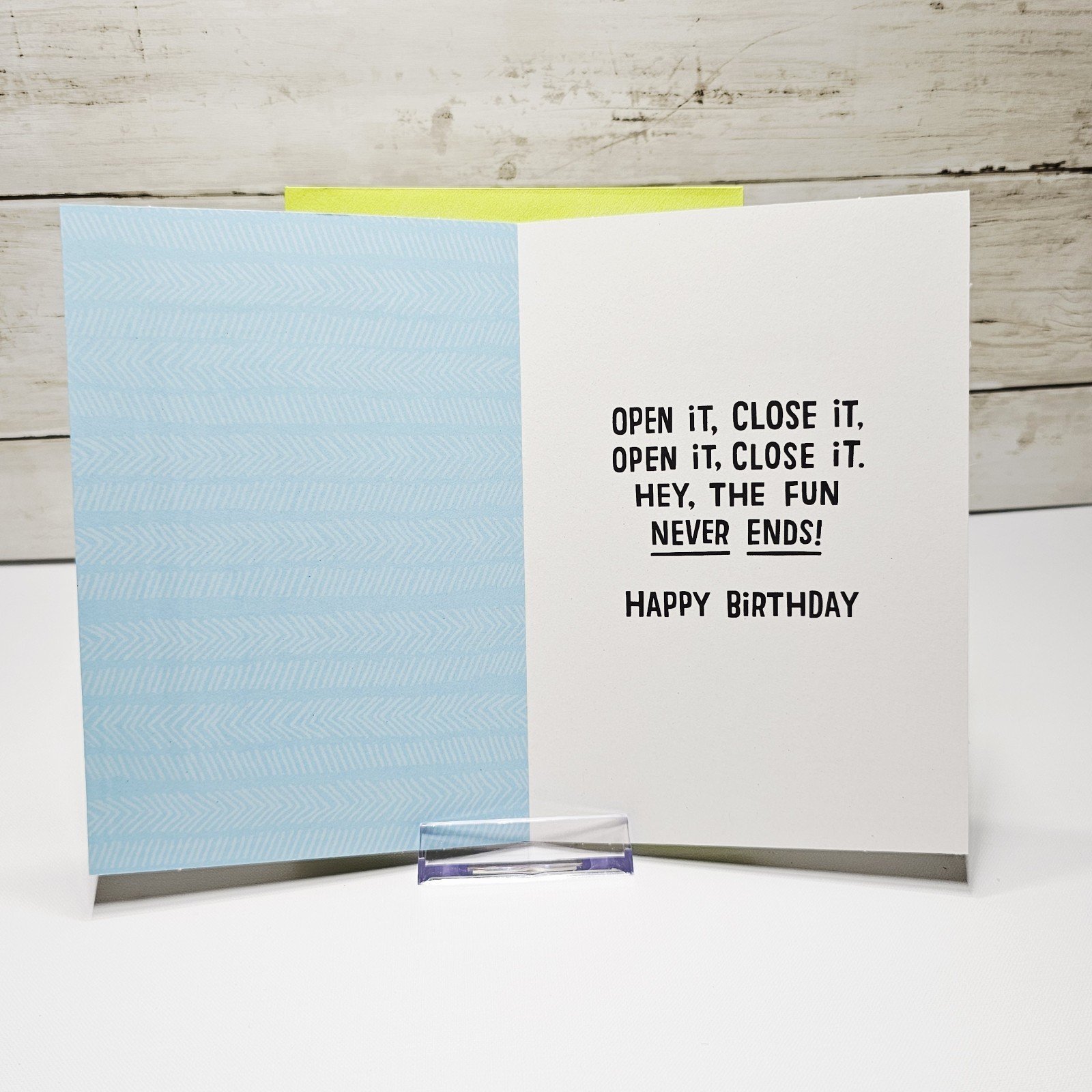 Hallmark Birthday Greeting Card 5×7 Gift Green Blue Open Close Humor5″ x 7″ card with matching envelopeCondition: newSearch thousands of cards for all