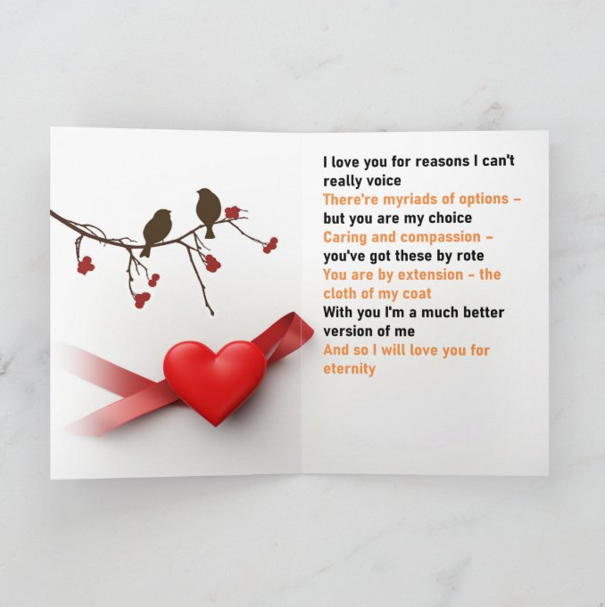 Show your love to your girlfriend/boyfriend/husband/wife with this cute lovey-dovey greeting card. Bigger than what you’d usually find at the store, b