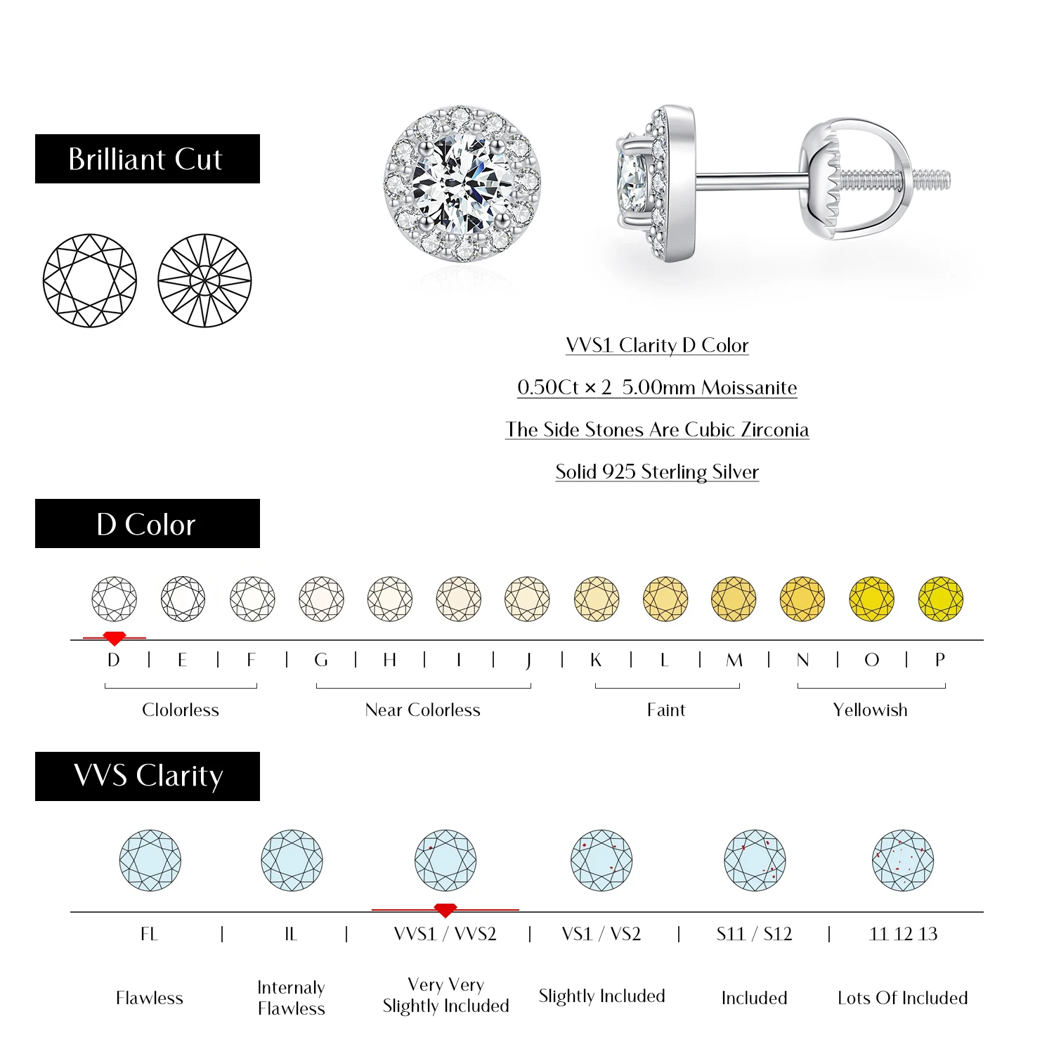 Earrings Main Stone Weight/Pairs:Moissanite Diamond 0.50 Carat × 2