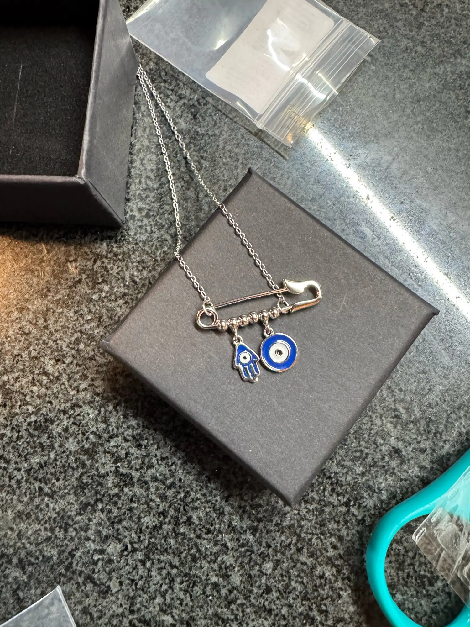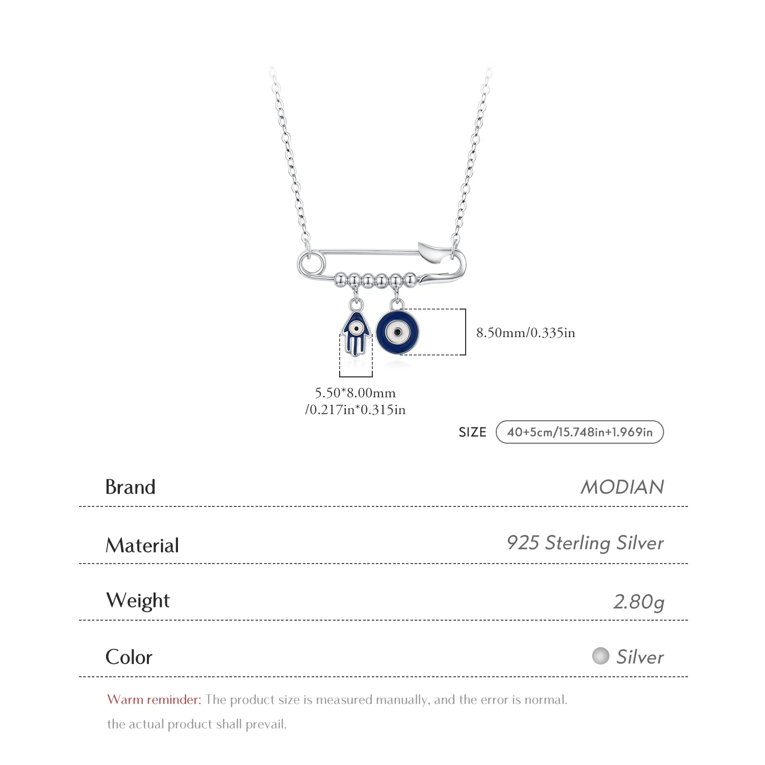 4 reviews for MODIAN 925 Sterling Silver Blue Enamel Eyes & Palm Charms Pendant Necklace P …