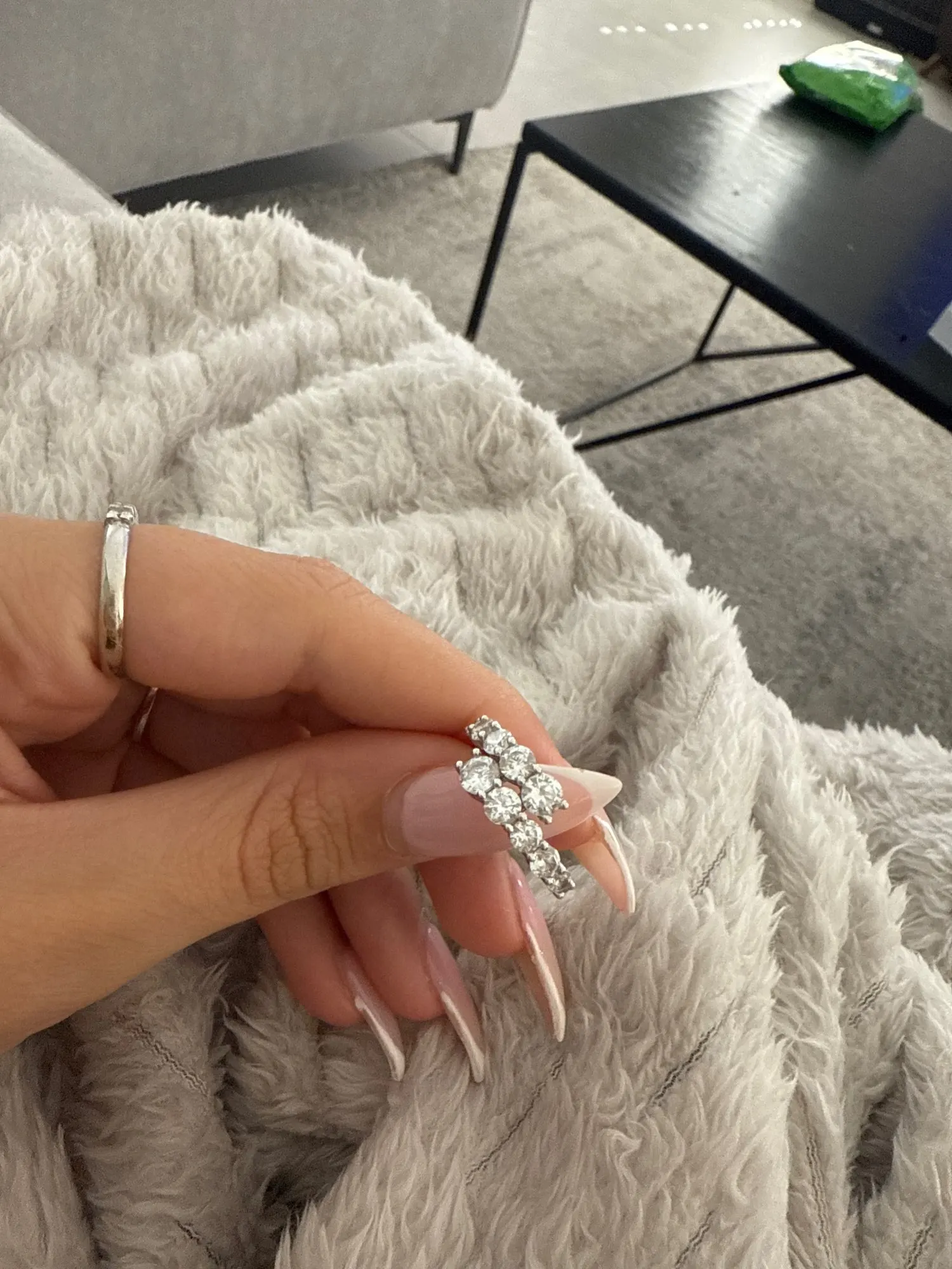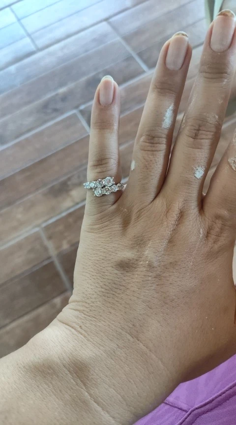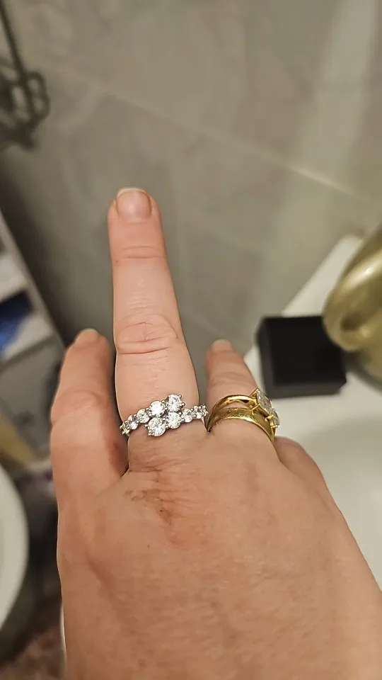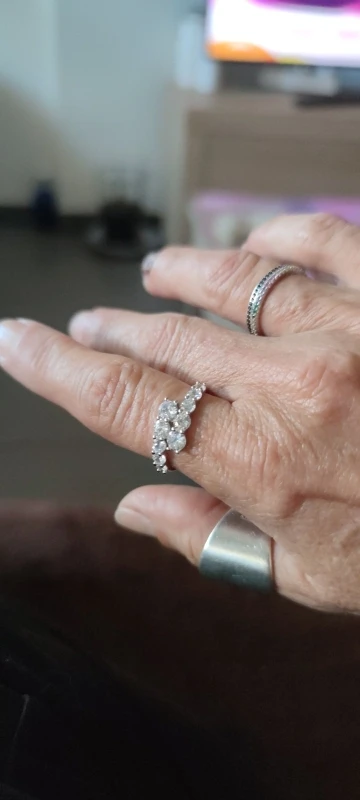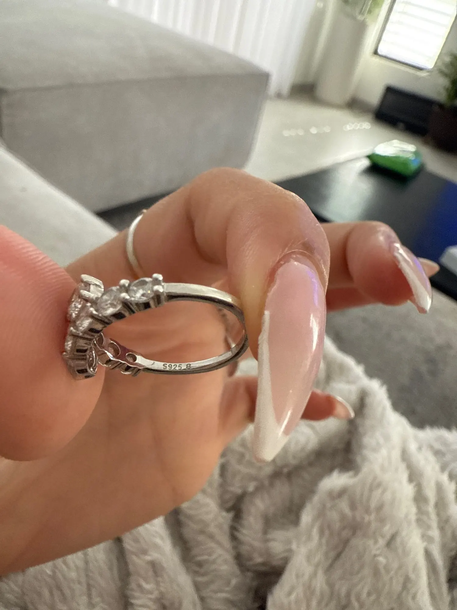 טבעת מאד יפה, האבנים נוצצות, יש חותמת כסף 925, בגודל מתאים, נראית בדיוק כמו בתמונה, אני ממליצה, מקווה שישאר מבריר