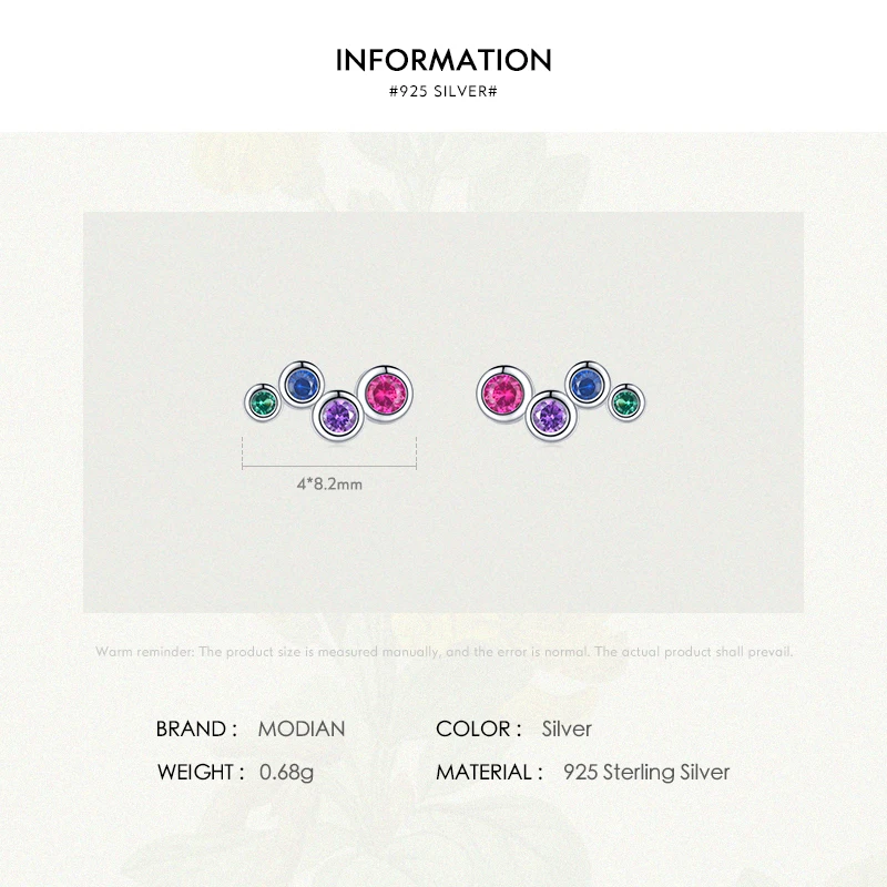 2 reviews for MODIAN 925 Sterling Silver Colorful Cubic Zirconia Tiny Small Bubble Stud Earrin …