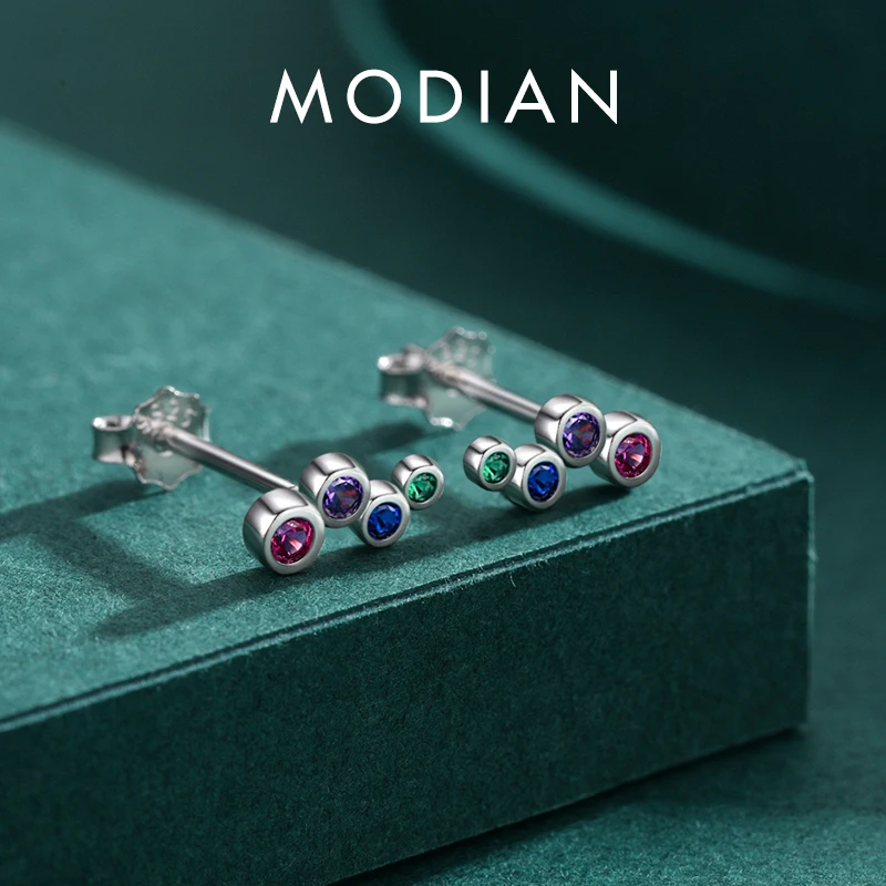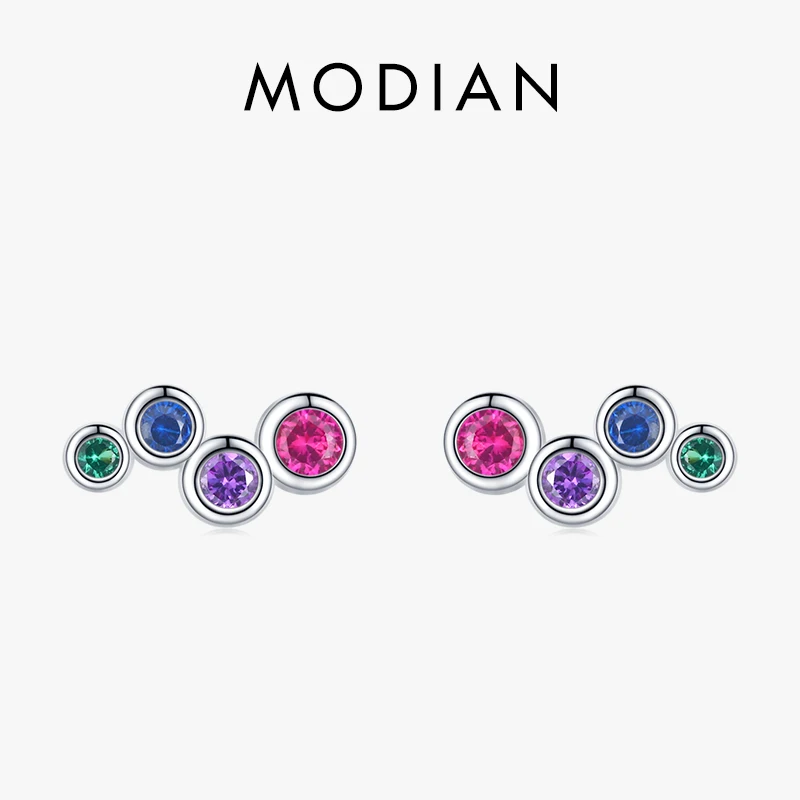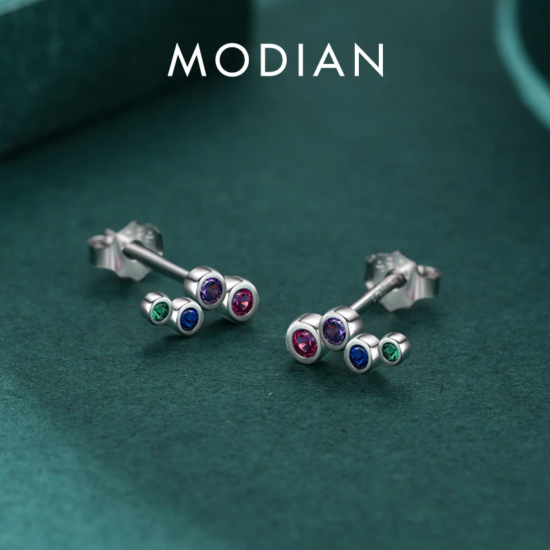 MODIAN 925 Sterling Silver Colorful Cubic Zirconia Tiny Small Bubble Stud Earrin …