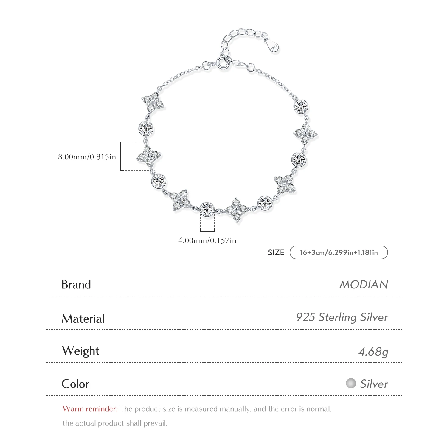 MODIAN 925 Sterling Silver Exquisite Dazzling Lucky Four-Leaf Clover Clear Zirco …