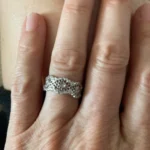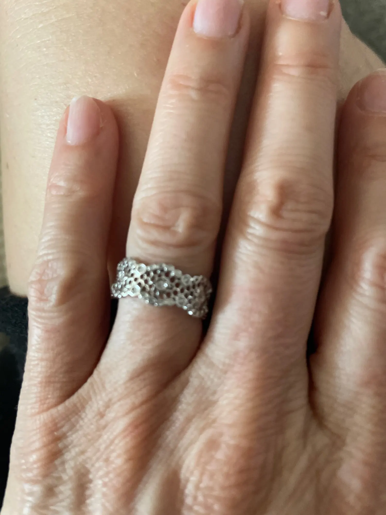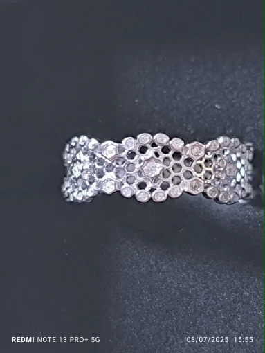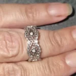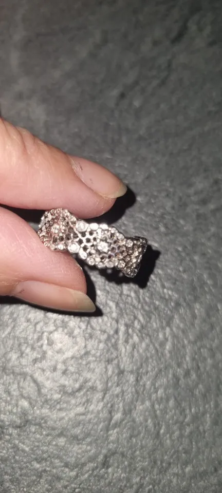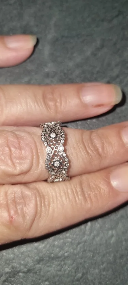 Carino, molto chiaro il metallo, un po’ troppo alto per abbinarlo ad un altro anello tipo una fede, comunque comodo e non picca