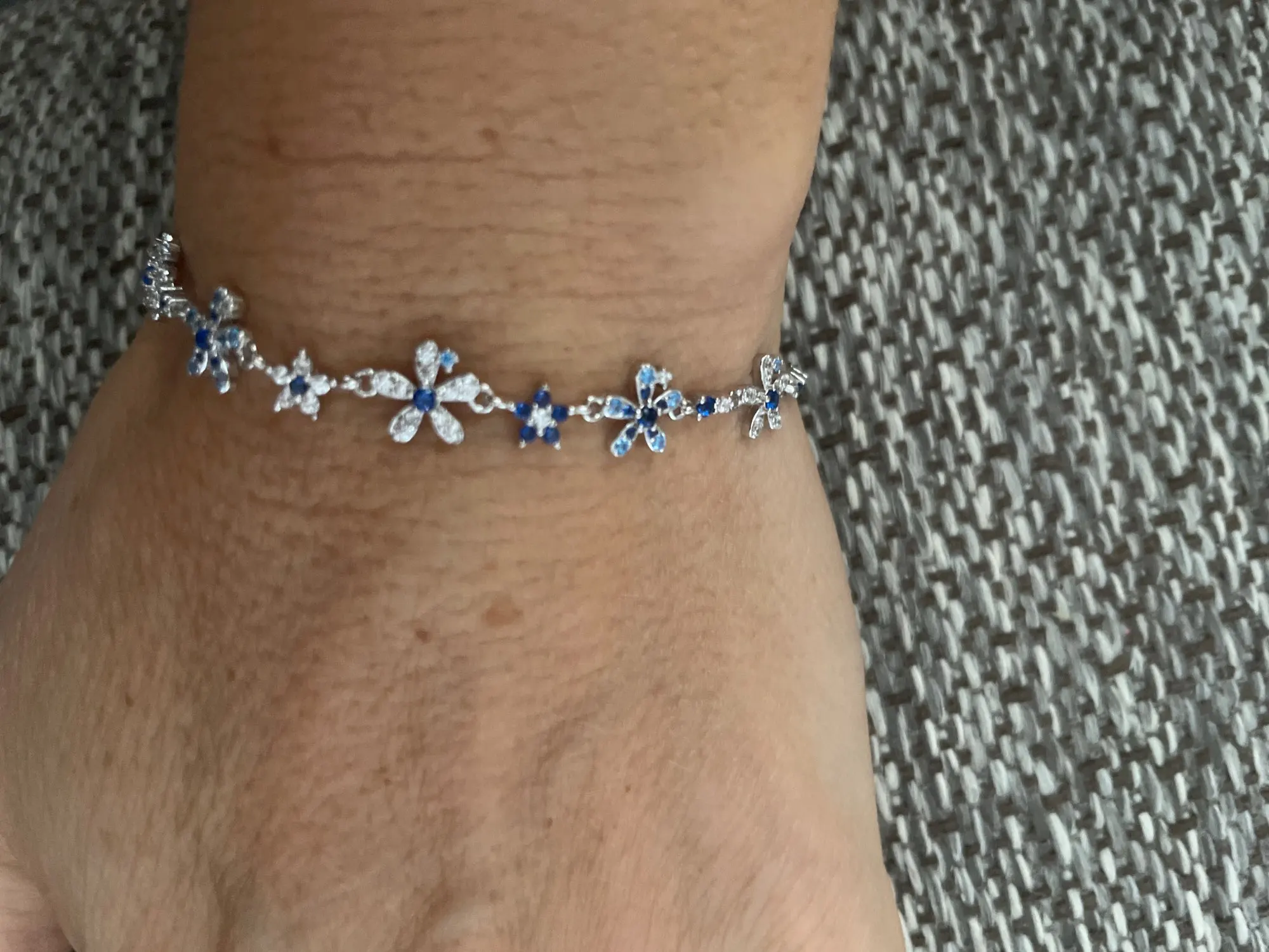Es una pulsera realmente hermosa 😍😍♥️ ,me ha encantado 😍 las flores son preciosas tienen un color azul divino ,brilla y coincide con la descripción. Una pulsera elegante que me enamoró desde que la vi 😍. Encantada con mi compra y en general 😍 🥰.