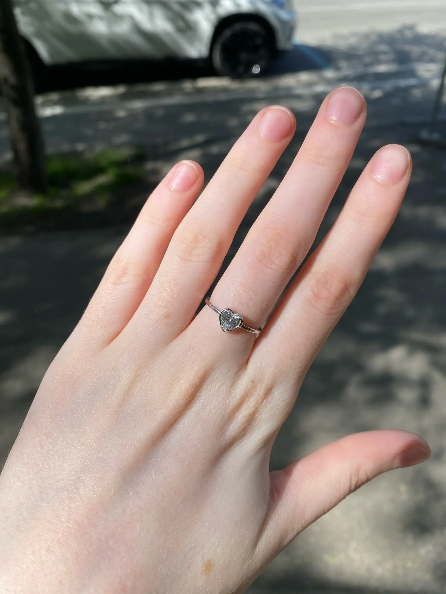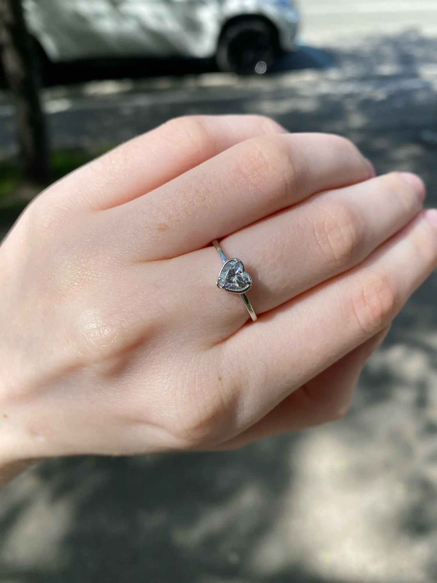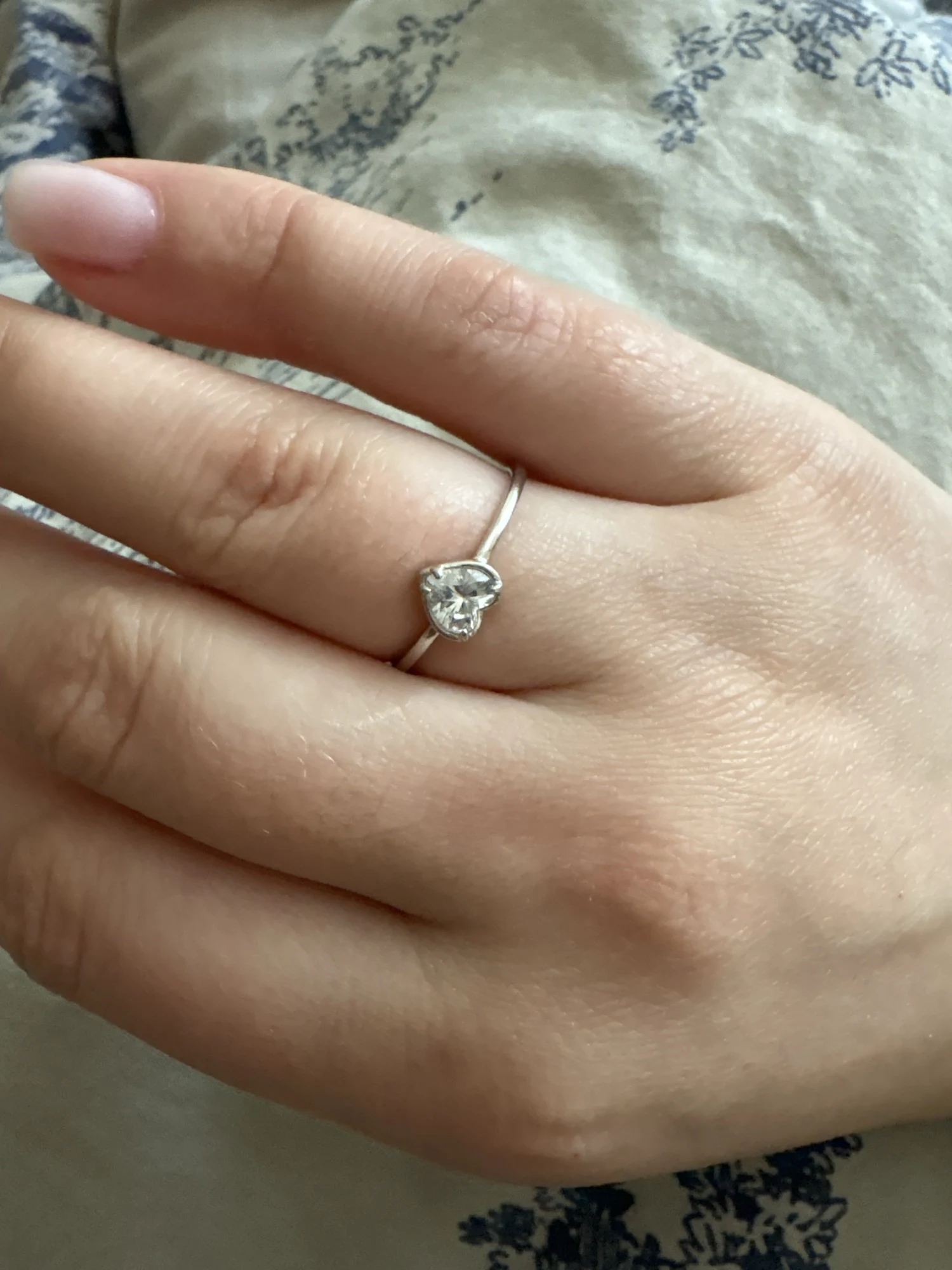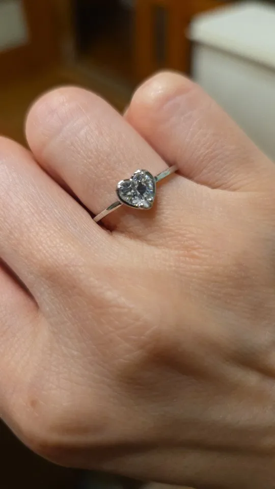 リングはとても華奢くて、ハートのキュービックジルコニアはキラキラとまばゆく輝いています。とても可憐なリング。