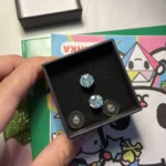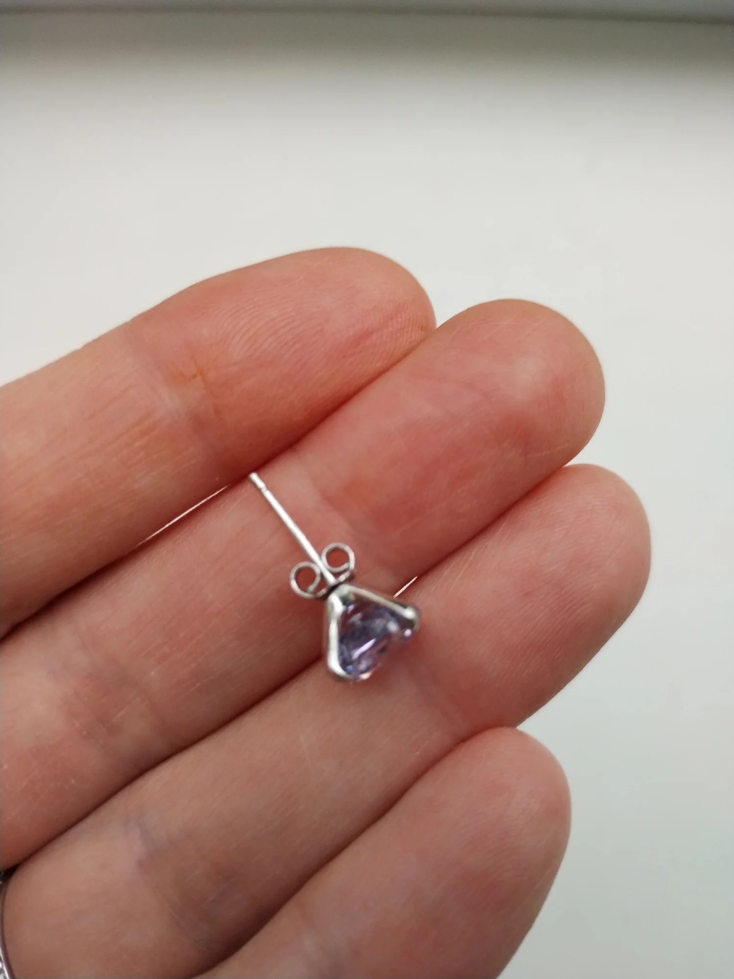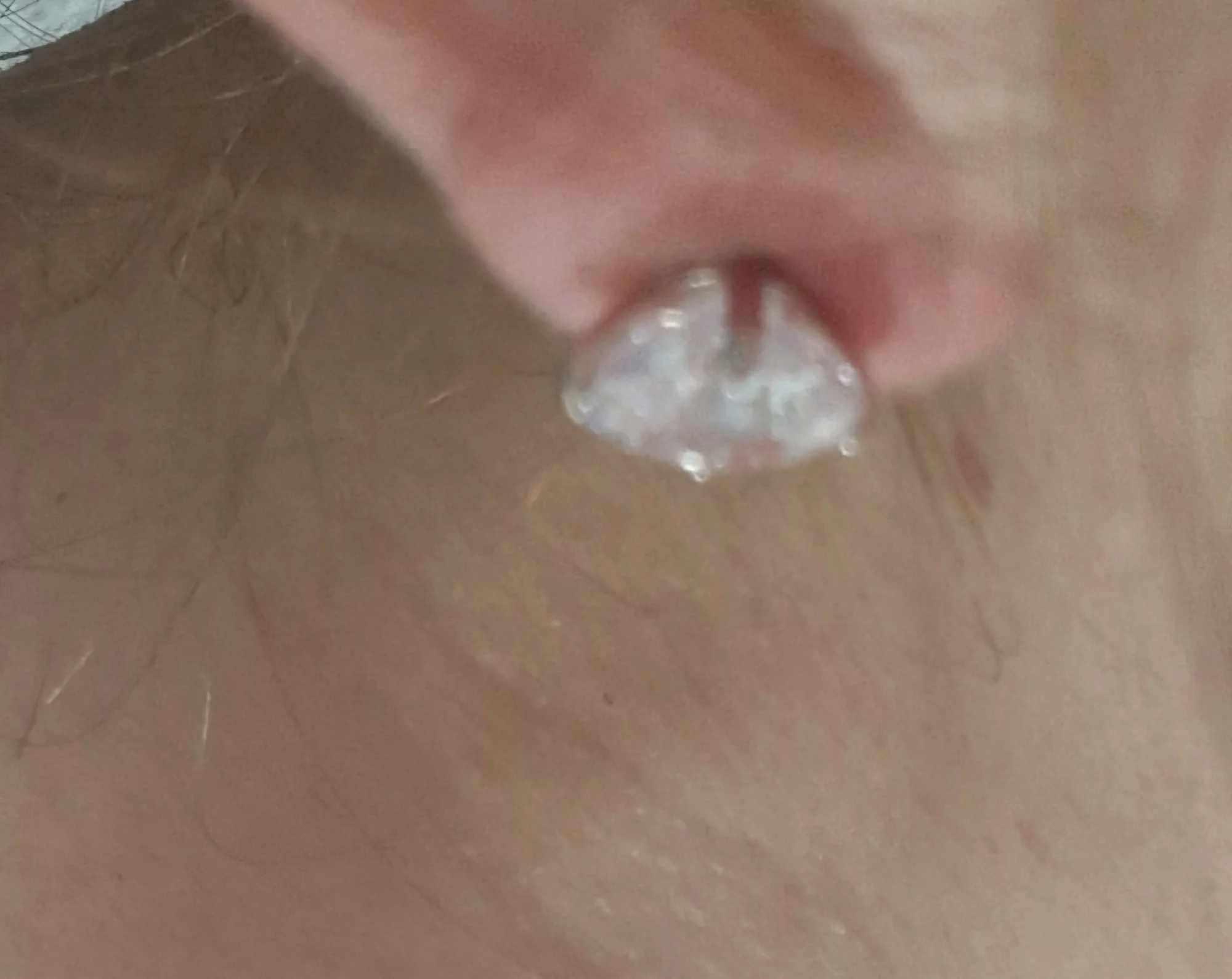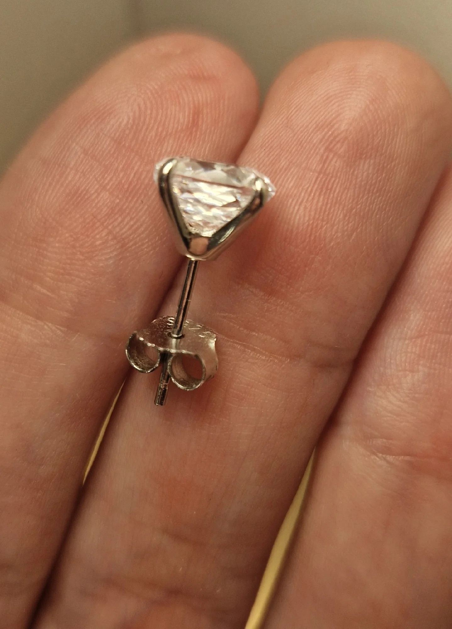 Серёжки очень красивые, но…. Очень длинный штифт, у меня довольно толстая мочка уха и все равно мешает, сам камушек так вставлен, что серёжка на ушке немного заваливается вниз