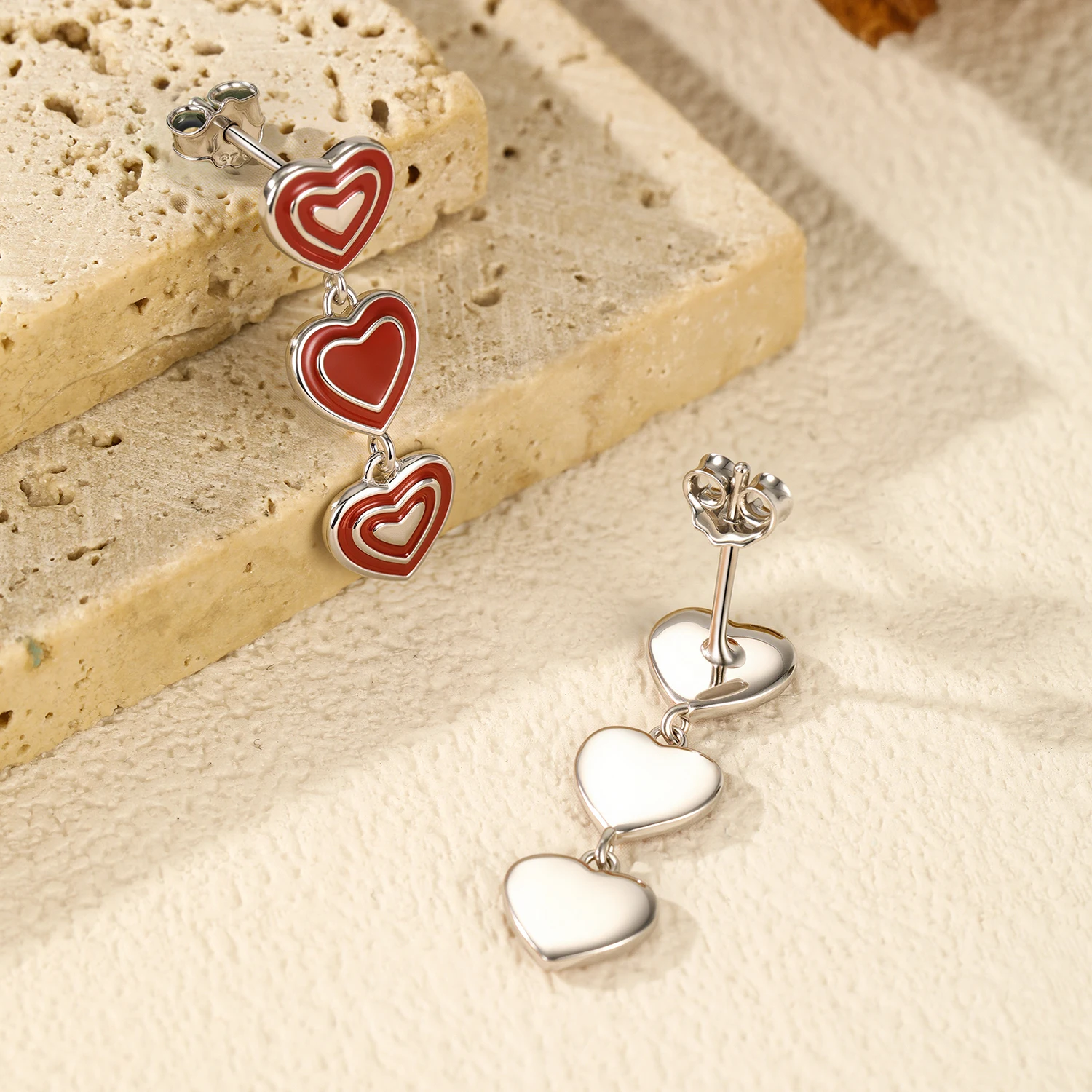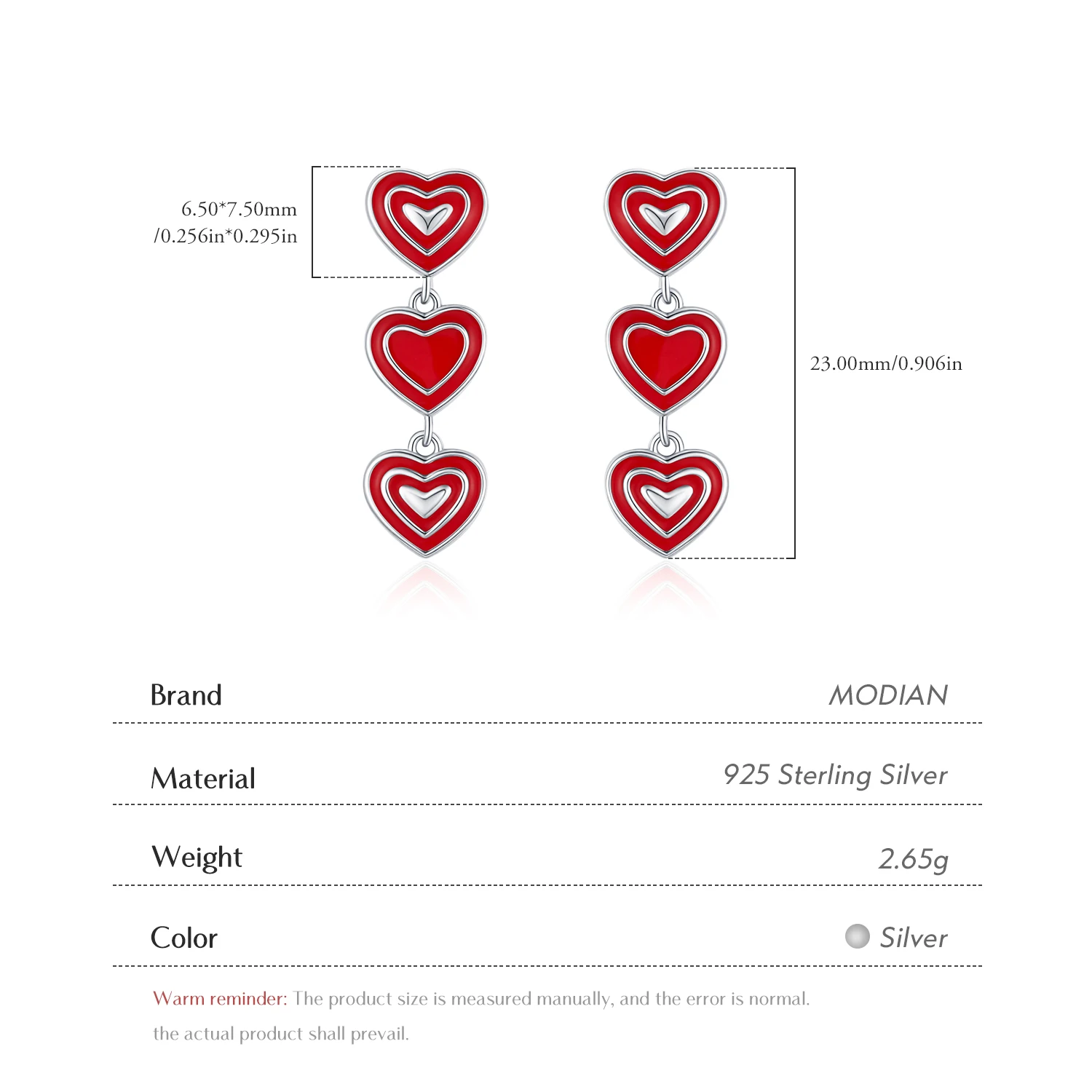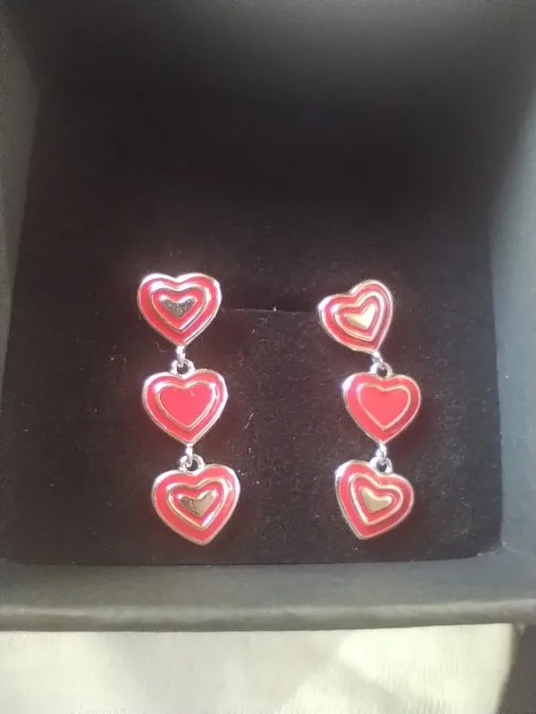 2 reviews for MODIAN 925 Sterling Silver Romantic Exquisite Red Enamel Hearts Stud Earrings Fo …