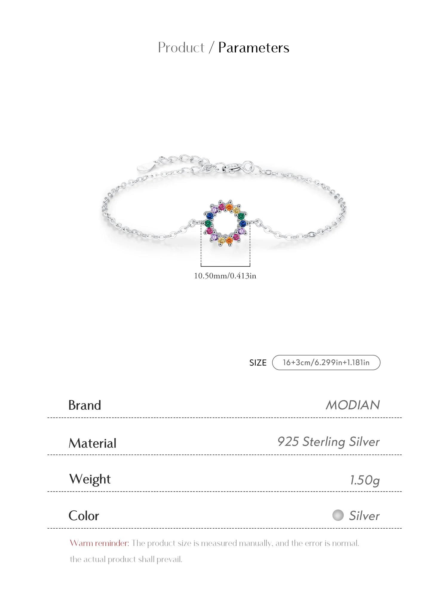 La pulsera es muy bonita, tiene piedras brillantes y coloridas en forma de sol y la cadena es más fina de lo que esperaba, espero que dure. Estoy satisfecha con mi compra 😍 😍 y en general 😍.