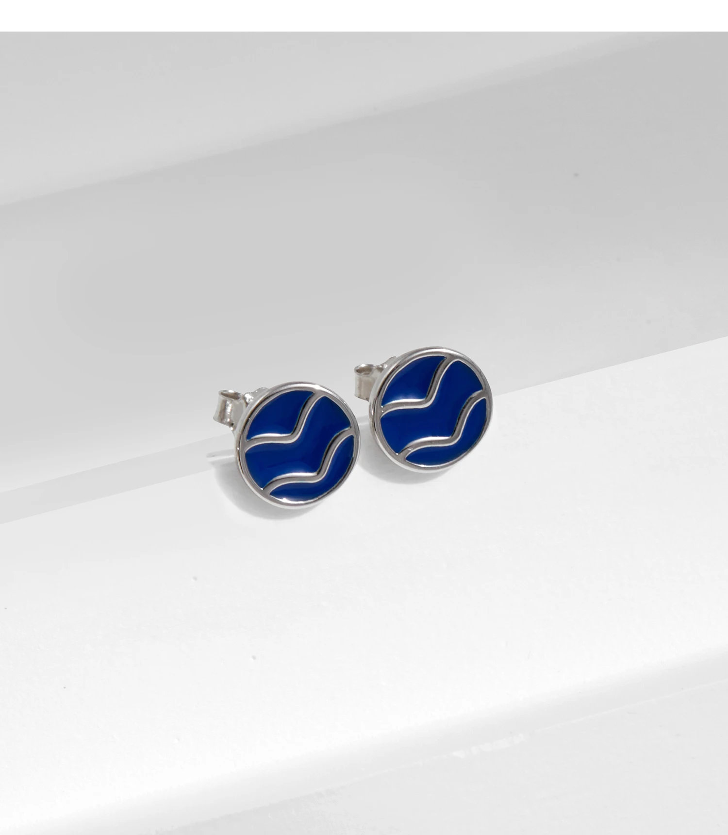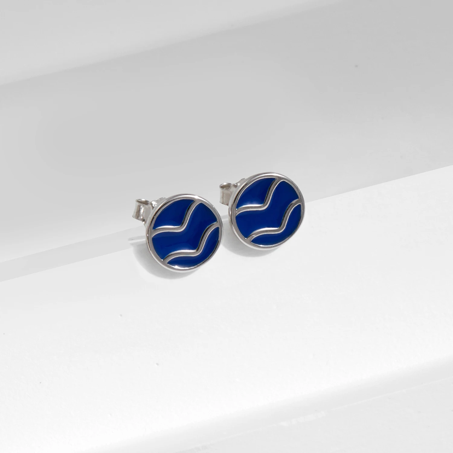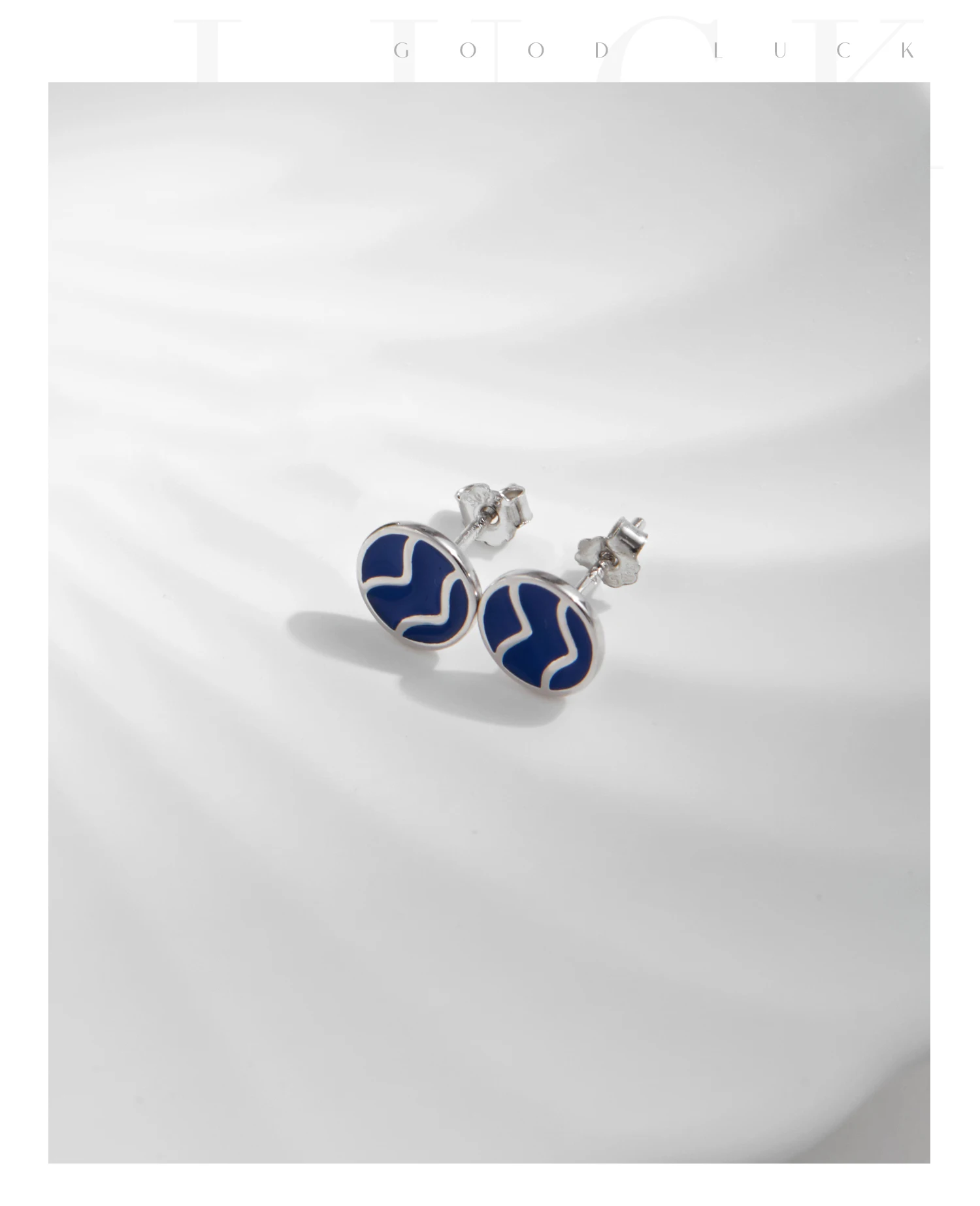 4 reviews for MODIAN 925 Sterling Silver Vintage Charming Blue Enamel Ripple Badge Stud Earrin …