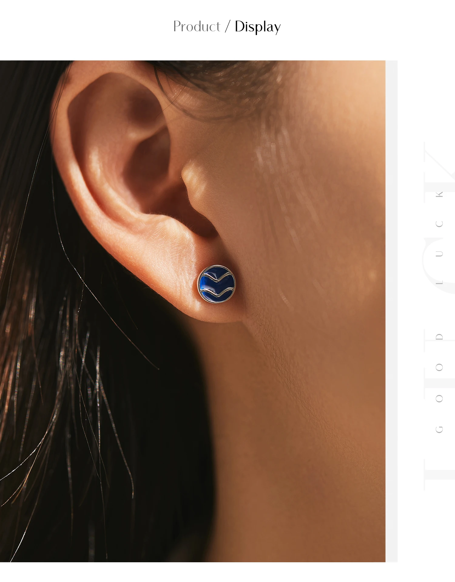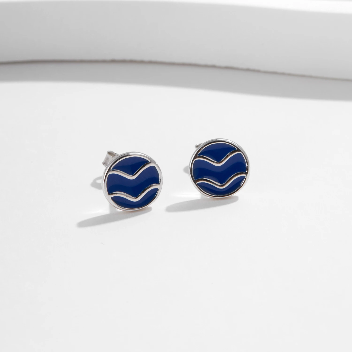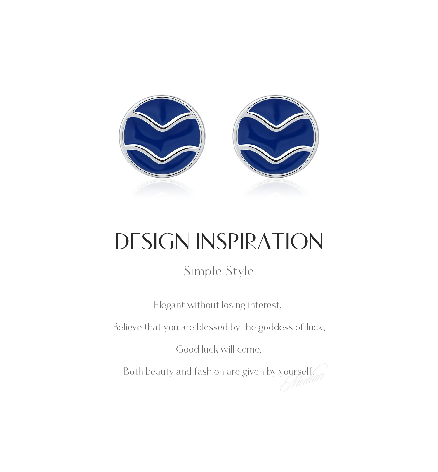 4 reviews for MODIAN 925 Sterling Silver Vintage Charming Blue Enamel Ripple Badge Stud Earrin …