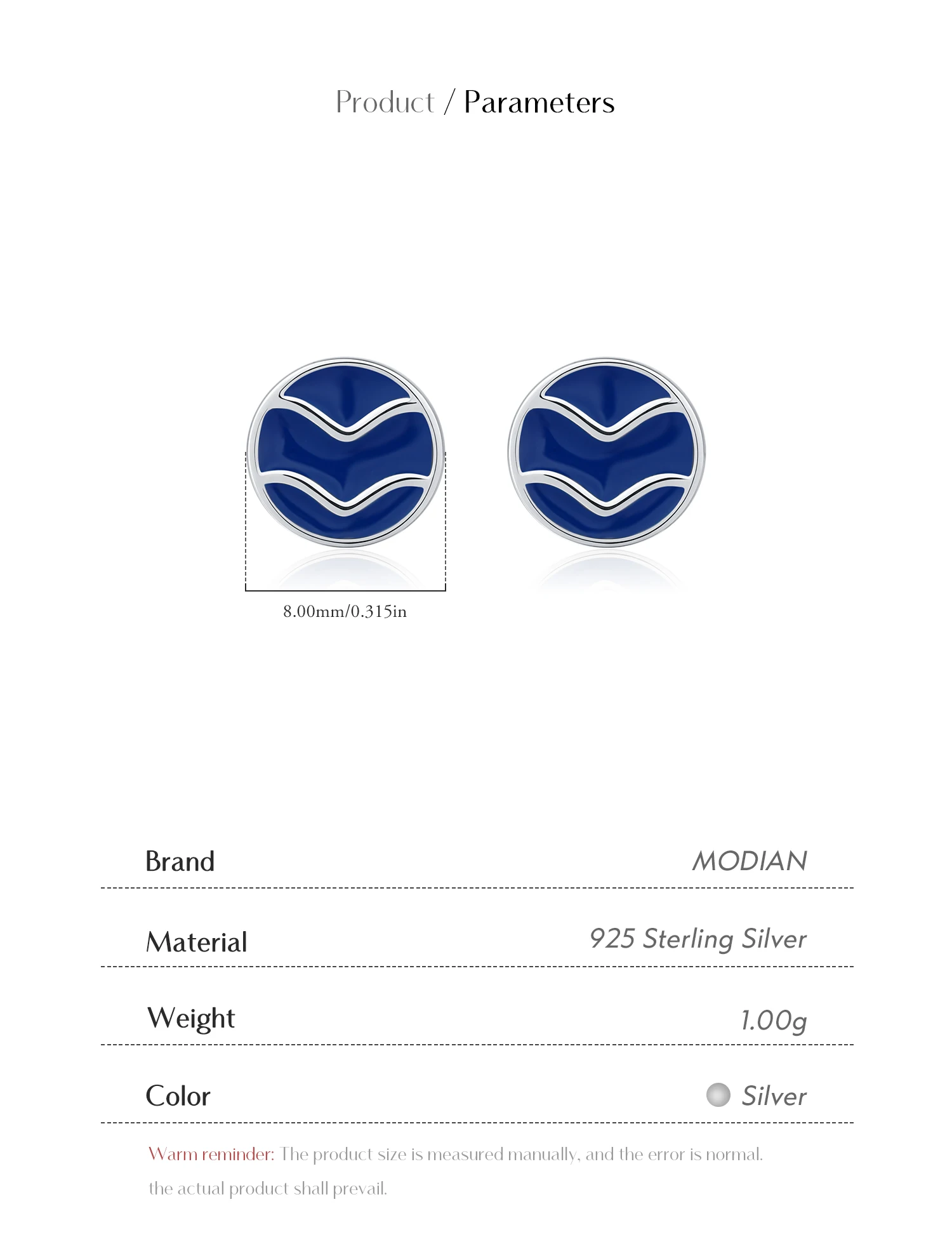 MODIAN 925 Sterling Silver Vintage Charming Blue Enamel Ripple Badge Stud Earrin …