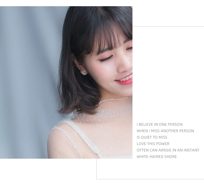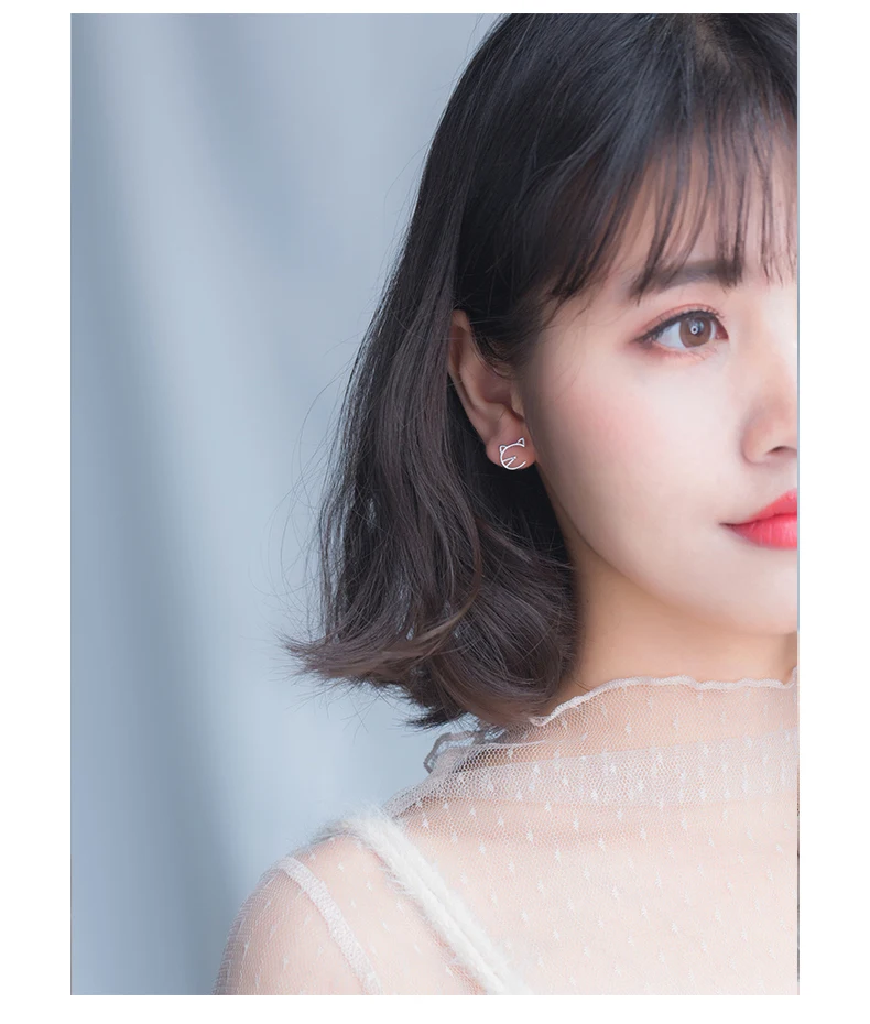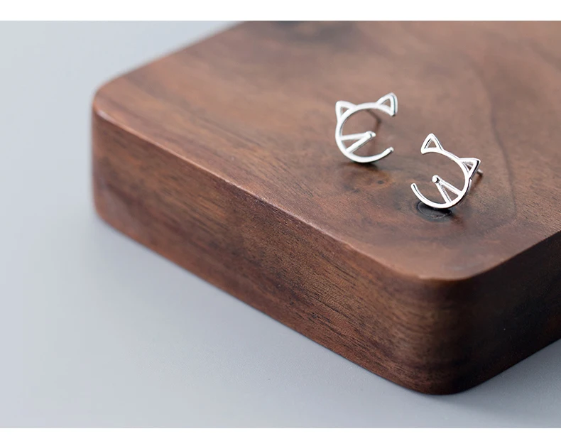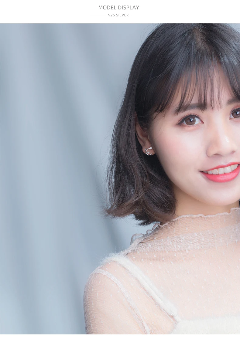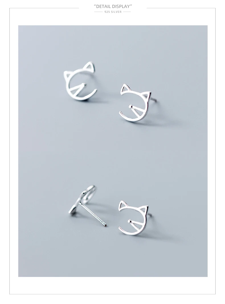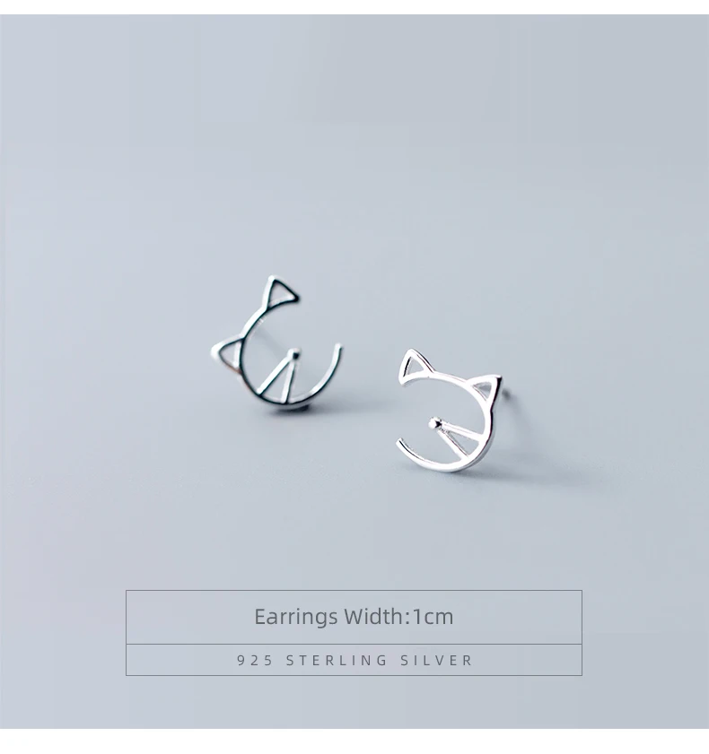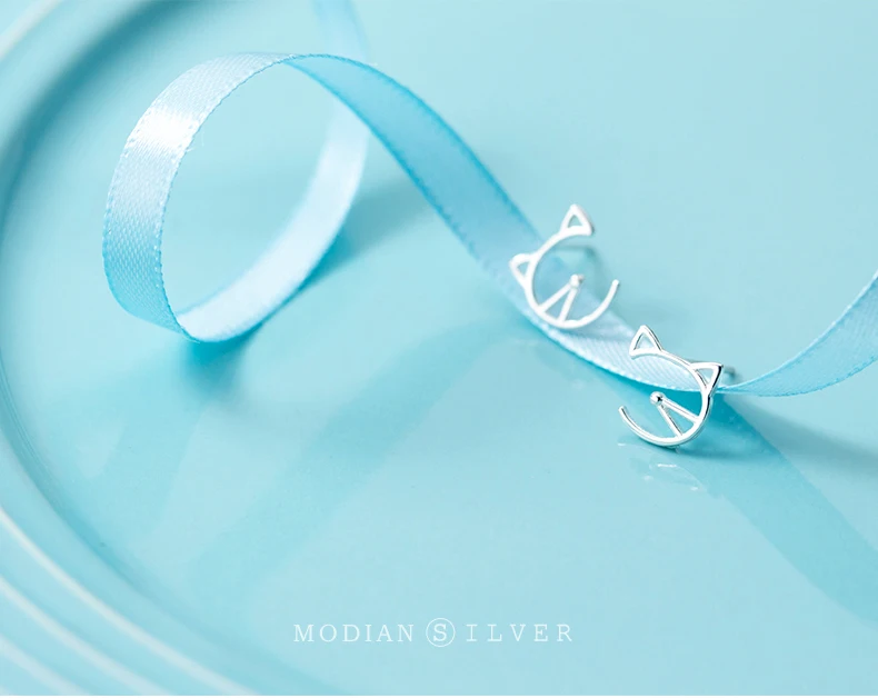 Modian Animal Cat Face Stud Earrings for Women Kid Girls Cute Design 925 Sterlin …