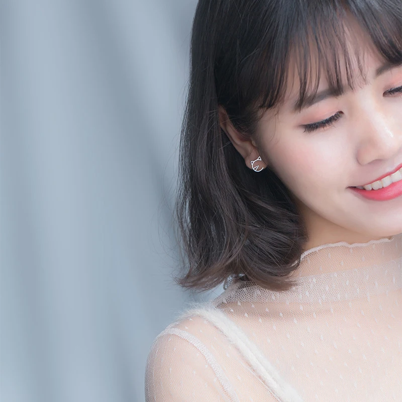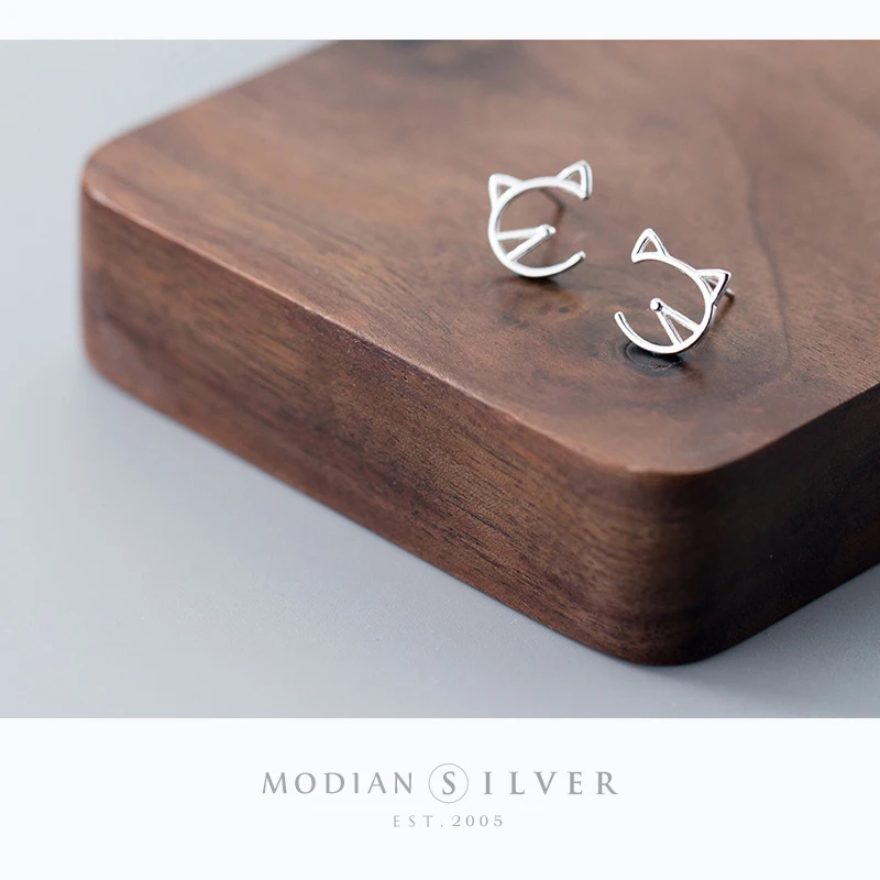 Modian Animal Cat Face Stud Earrings for Women Kid Girls Cute Design 925 Sterlin …