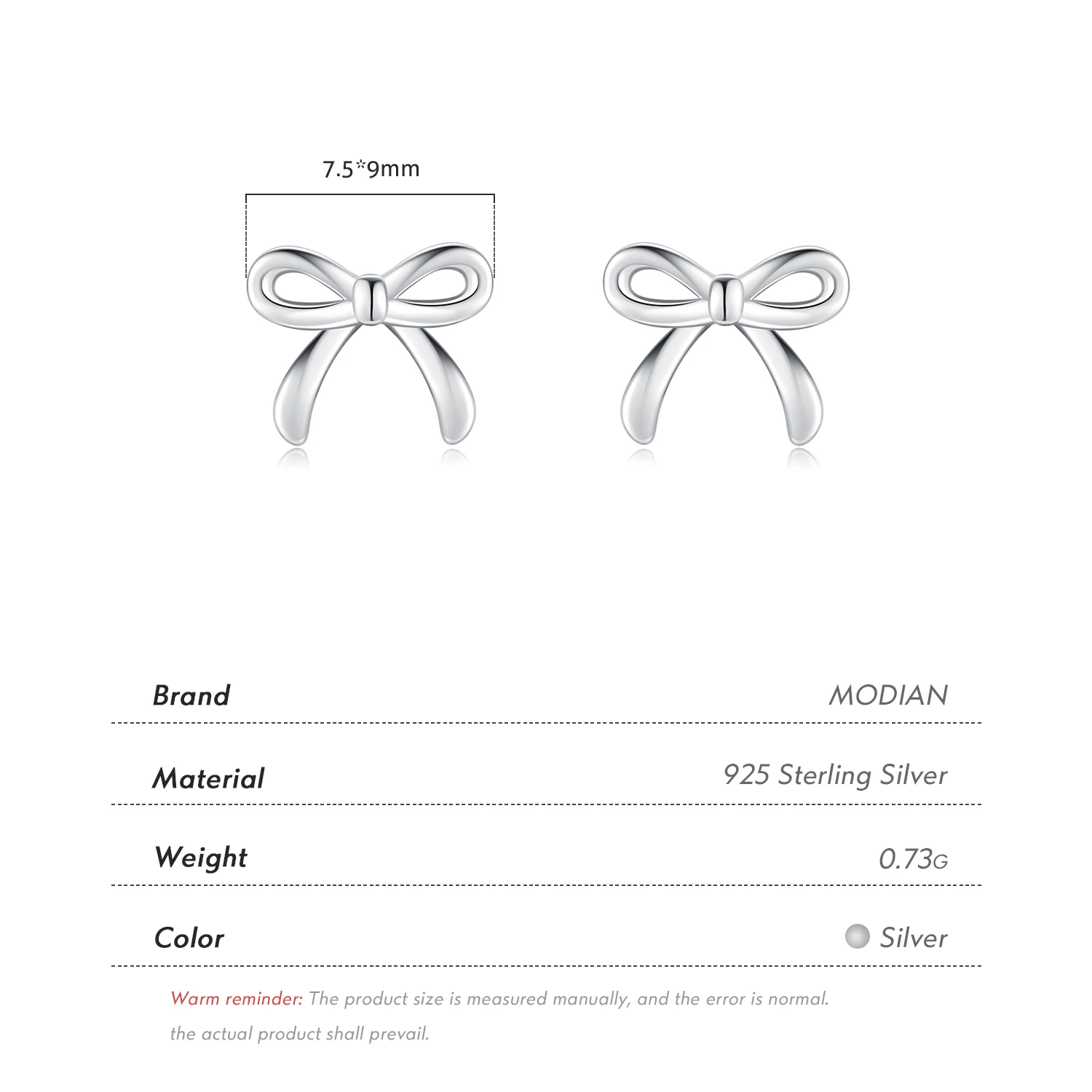1 review for MODIAN Bowknot Earrings For Women 925 Sterling Silver Cute Simple Exquisite Hypo …