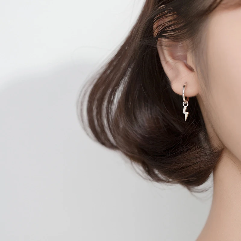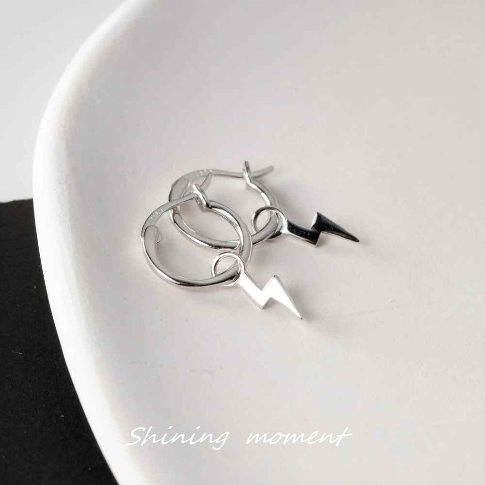 MODIAN Classic Lightning Minimalism Hoop Earring for Women Pure 925 Sterling Sil …