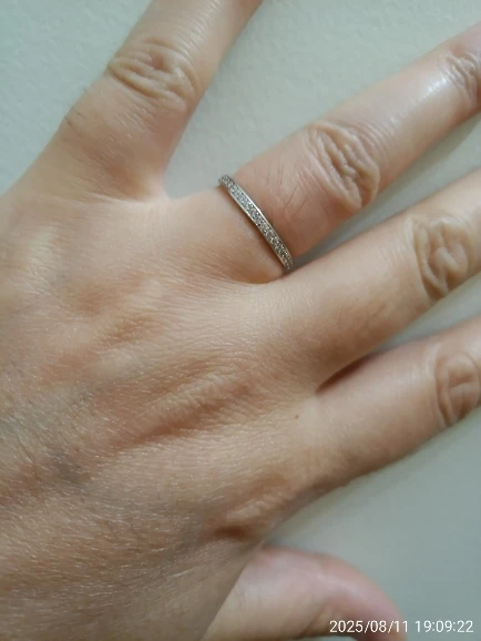 Its a dainty ring. True to sizing, pretty and sparkly! Worth the price