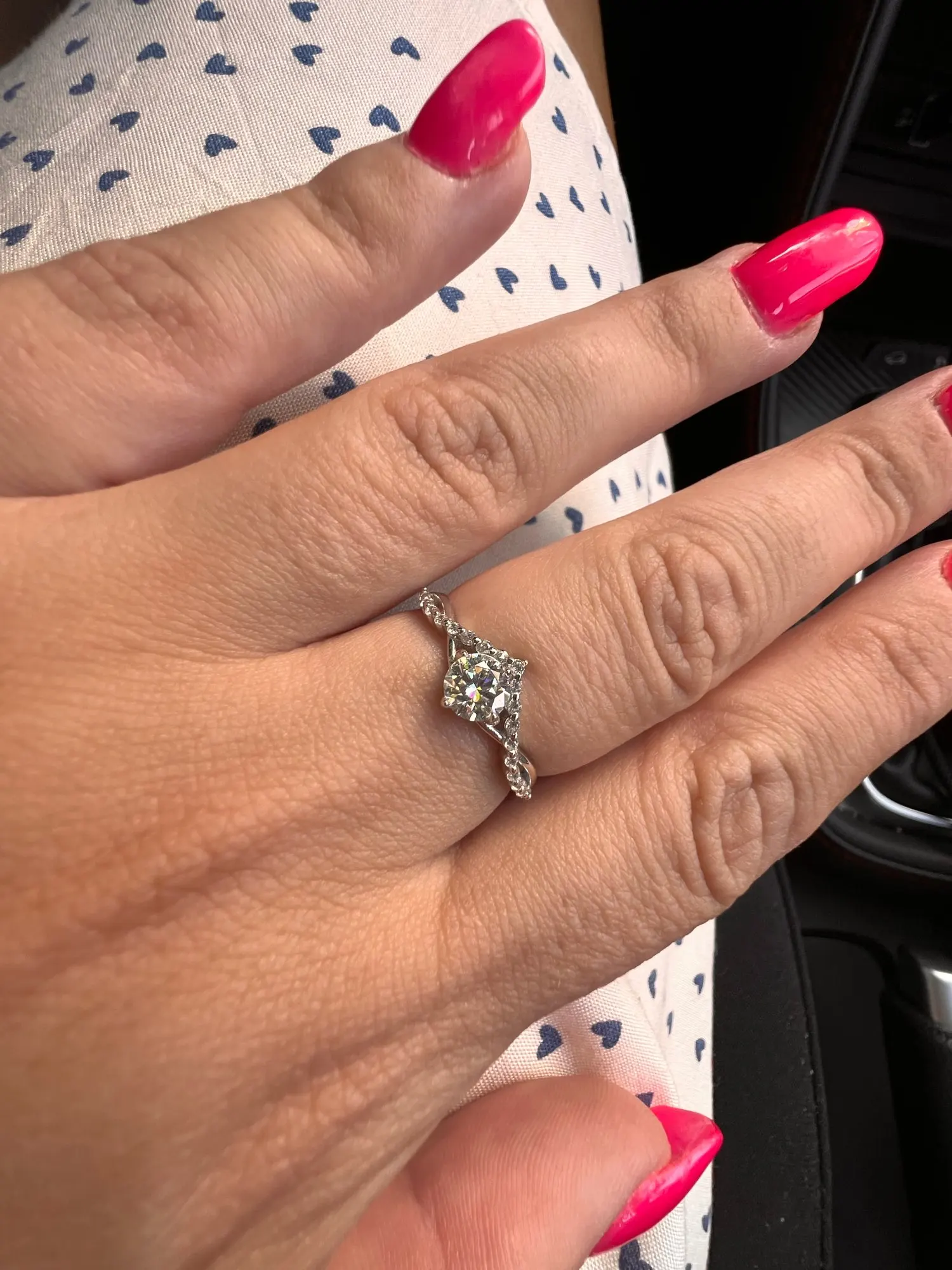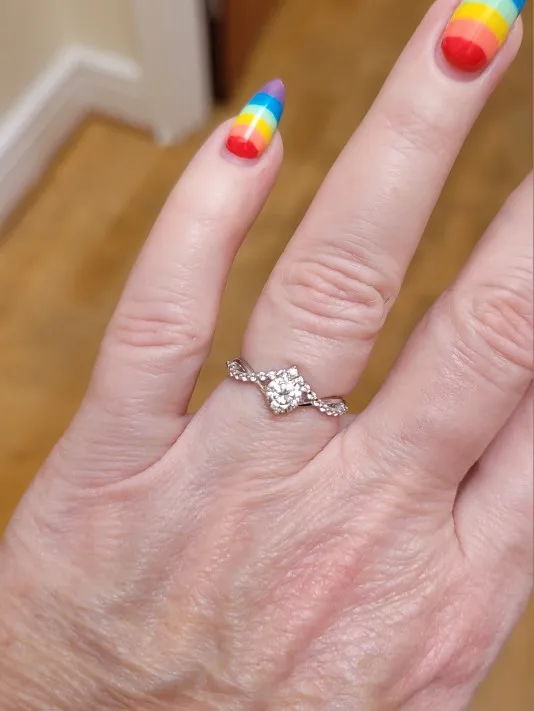 Very nice ring with sparkly stone for this price. Sizing slightly on the small side. Satisfied with my purchase.
