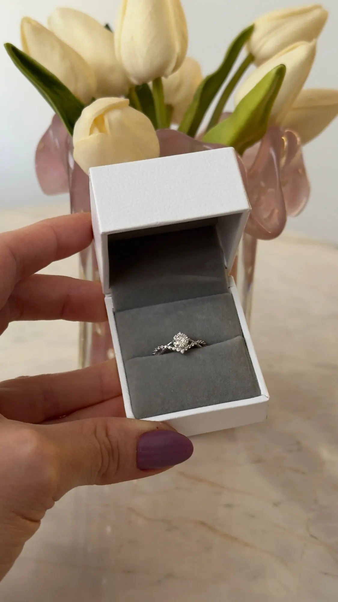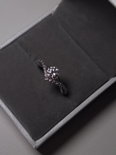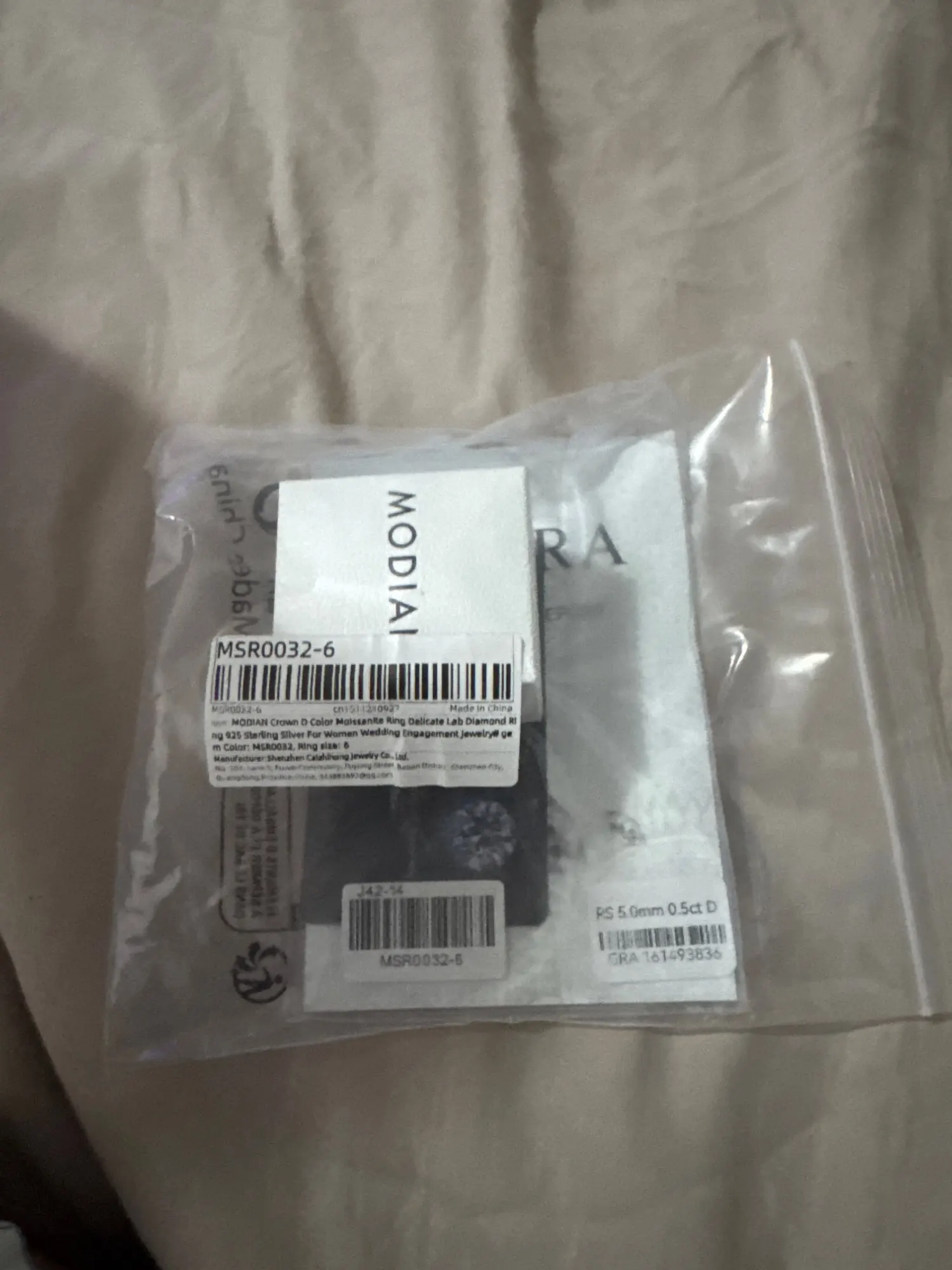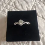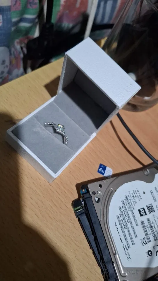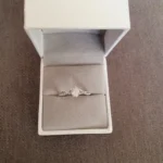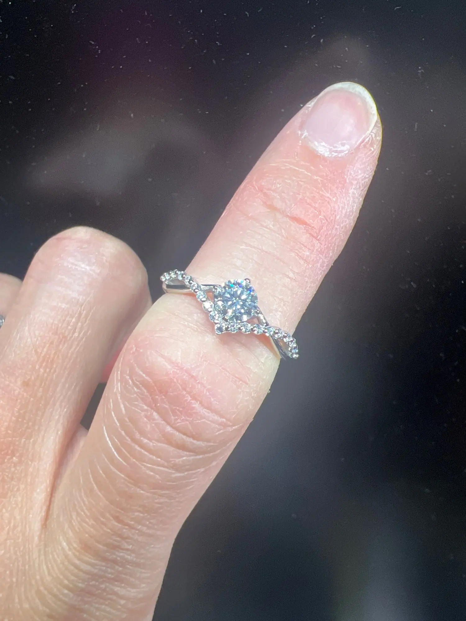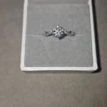 Schöner Ring. Die Probe S925 7 ist vorhanden. Dazu bekommt man eine schöne Verpackung und ein Zertifikat. Die Steine funkeln, aber nicht mehr als andere aus Zirkonia. Der größte Stein sitzt ein bisschen schief.