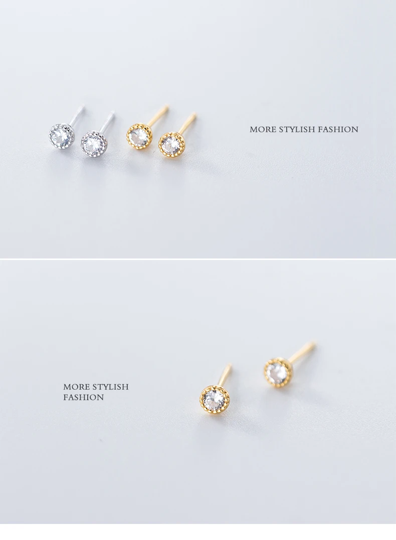 Modian Cute Round Zircon Gold Color Stud Earring for Women Real 925 Sterling Sil …