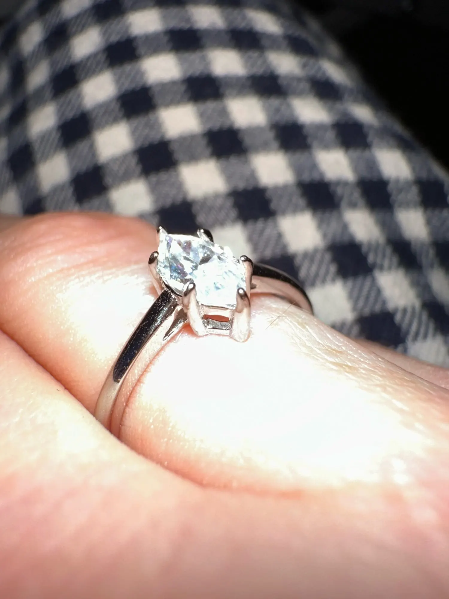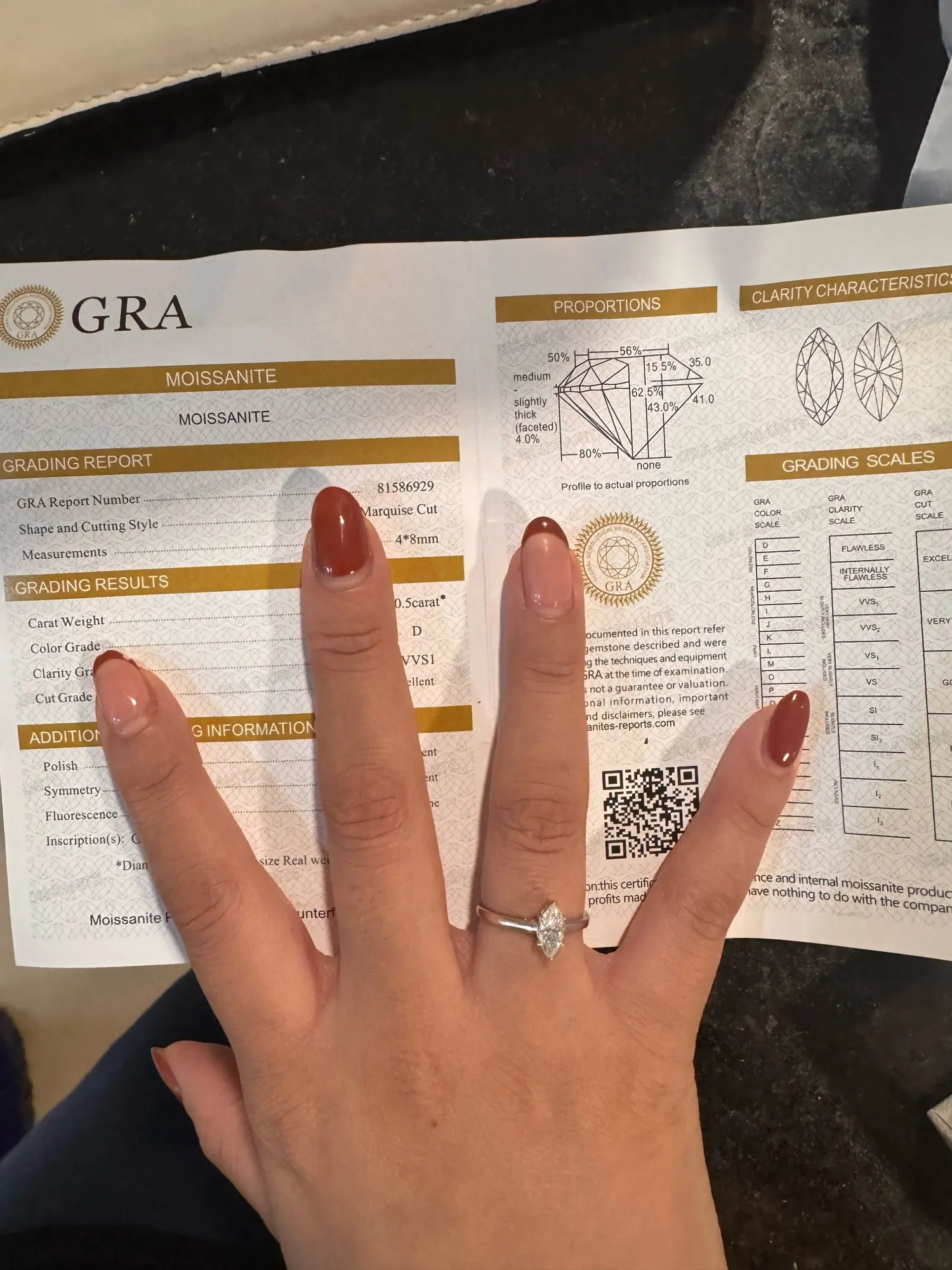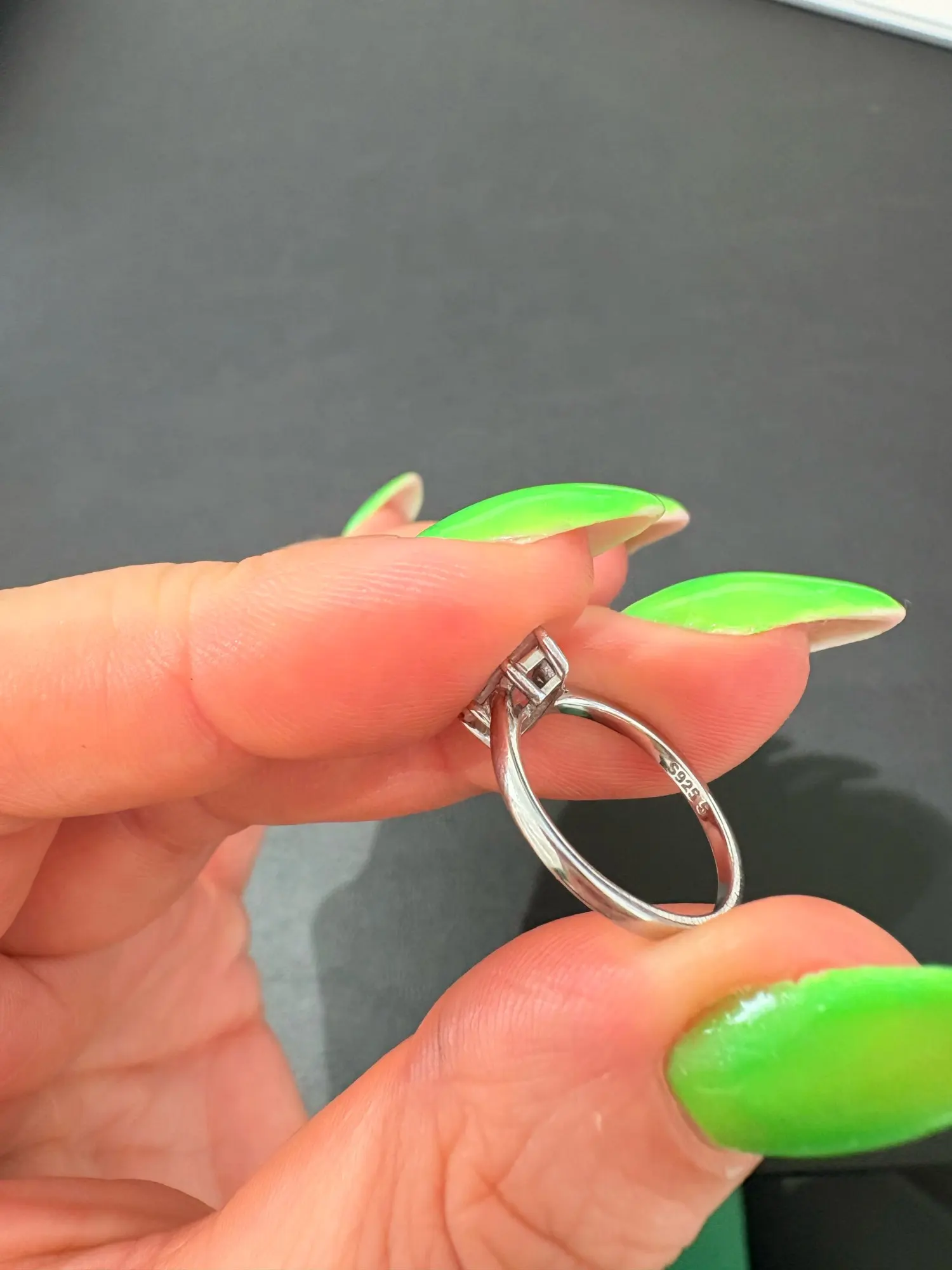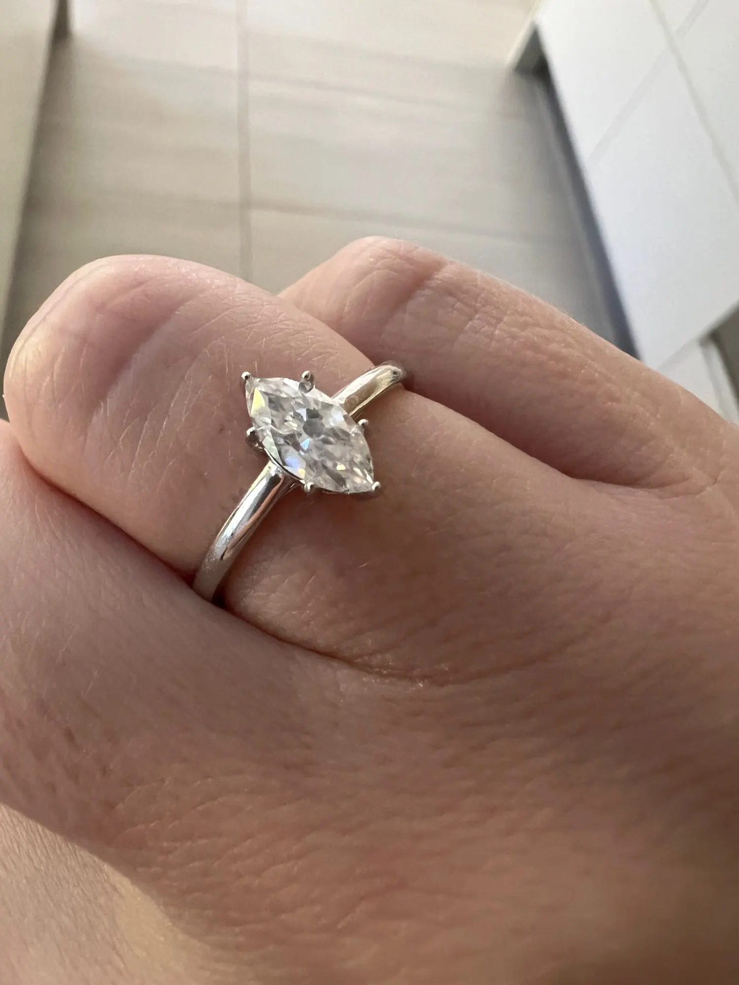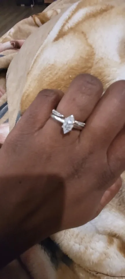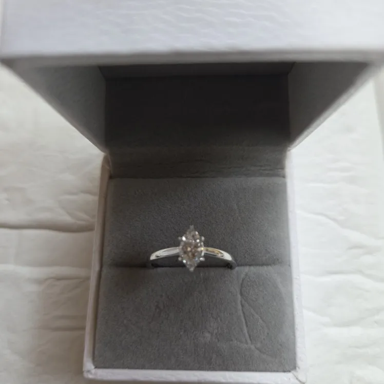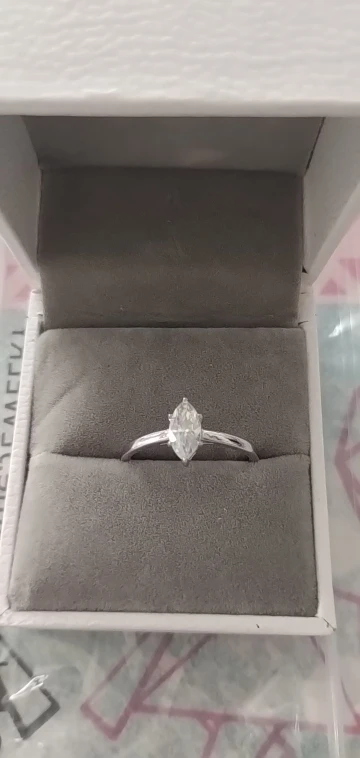 magnifique bague marquise en argent véritable et moissanite véritable testée et vérifiée. à recommander pour faire un beau cadeau pour un anniversaire ou autre chose. très bon magasin qui vend toujours de la grande qualité de bijoux.
