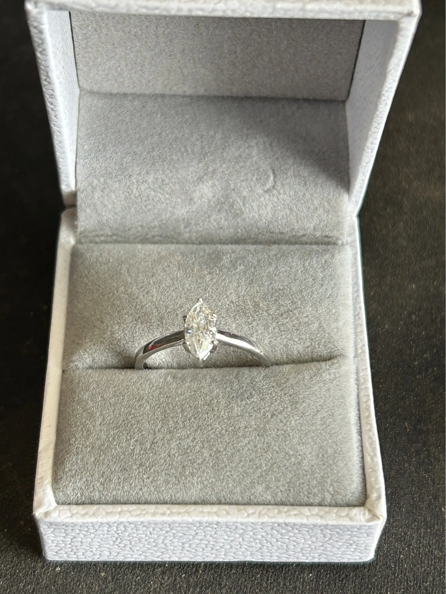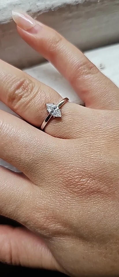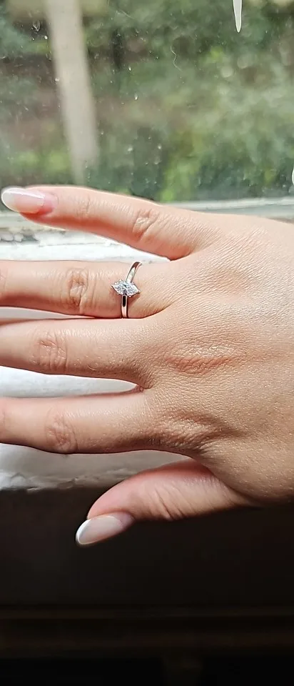 absolutamente hermoso, las fotos no le hacen justicia, llego muy rápido a mexico, Brilla muchisimo, las canasta del marquise es muy resistente, trae su certificado, la caja del anillo es preciosa igual, talla perfecta, el tamaño lo hace ver muy elegante, nada exagerado, me encantó