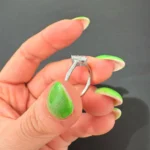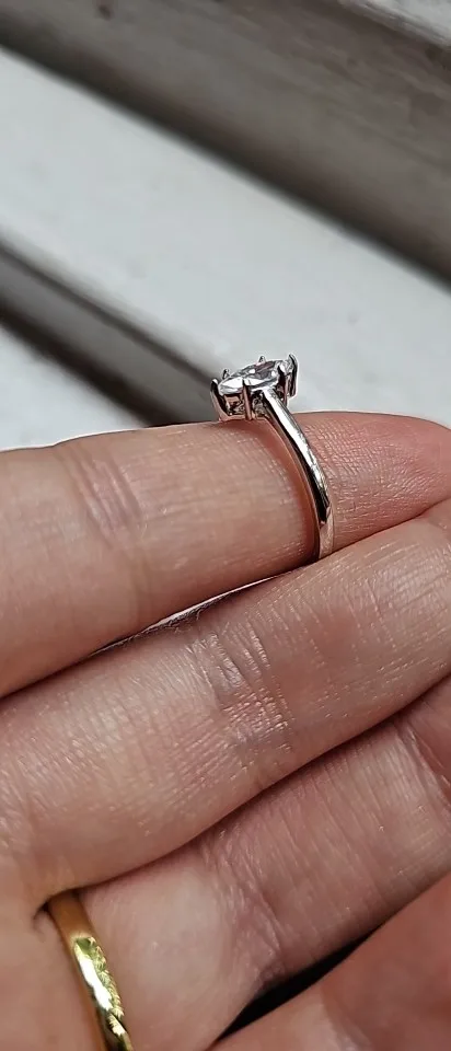 J’ai pris 0,5ct en taille 5, c’est parfait et très beau. Je la porte depuis plusieurs jours la couleur argent ne part pas