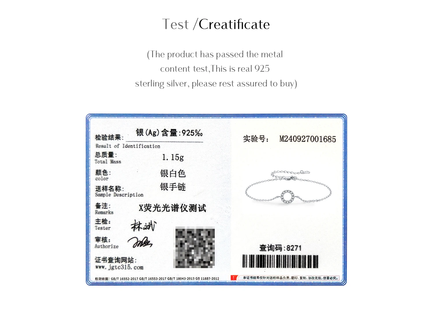 Beautiful bracelet and great quality for the price. It came with a big jewelry box and a GRA certificate. Thank you. 🤍