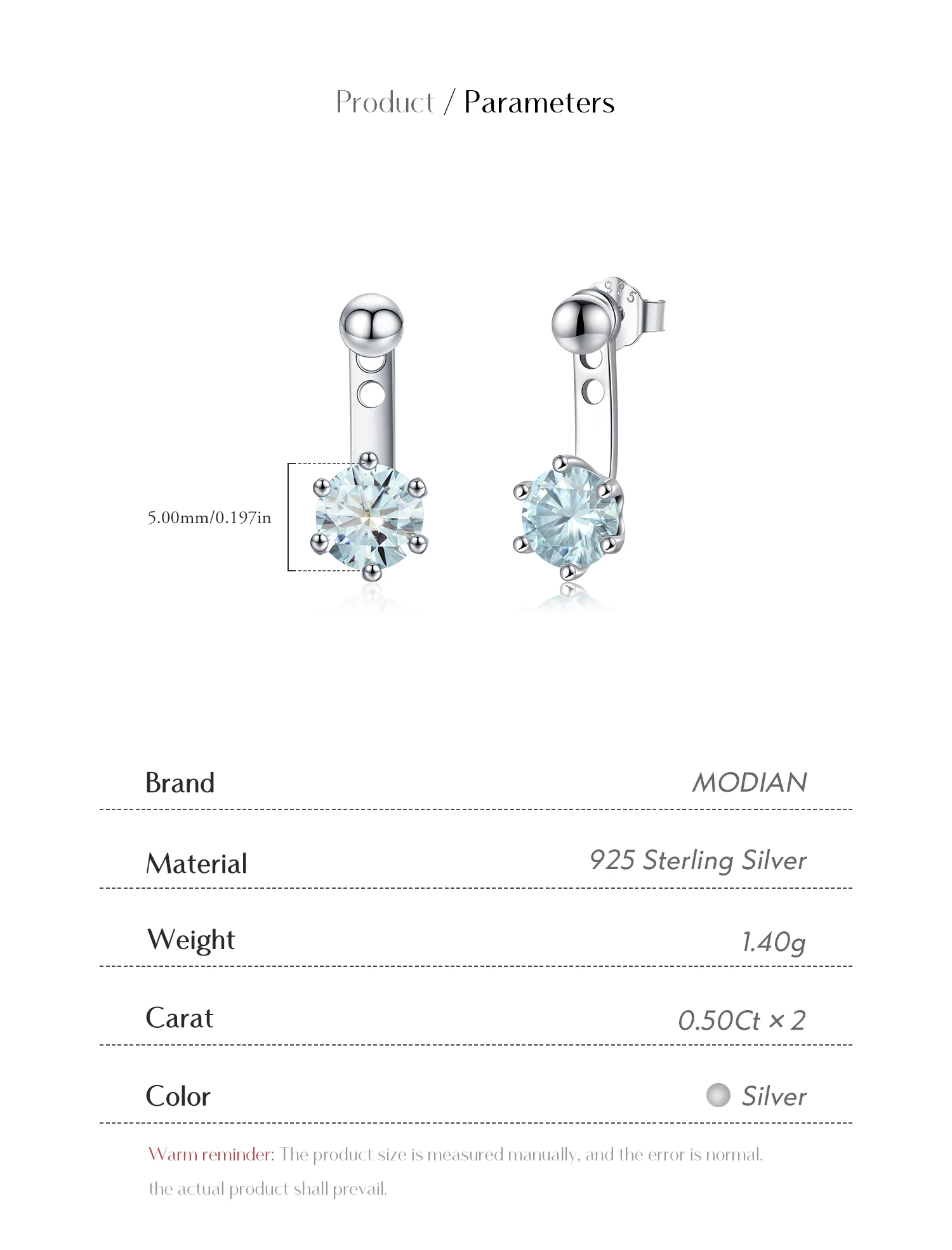 Earrings Main Stone Size/Pairs:Moissanite Diamond 5.00mm × 2