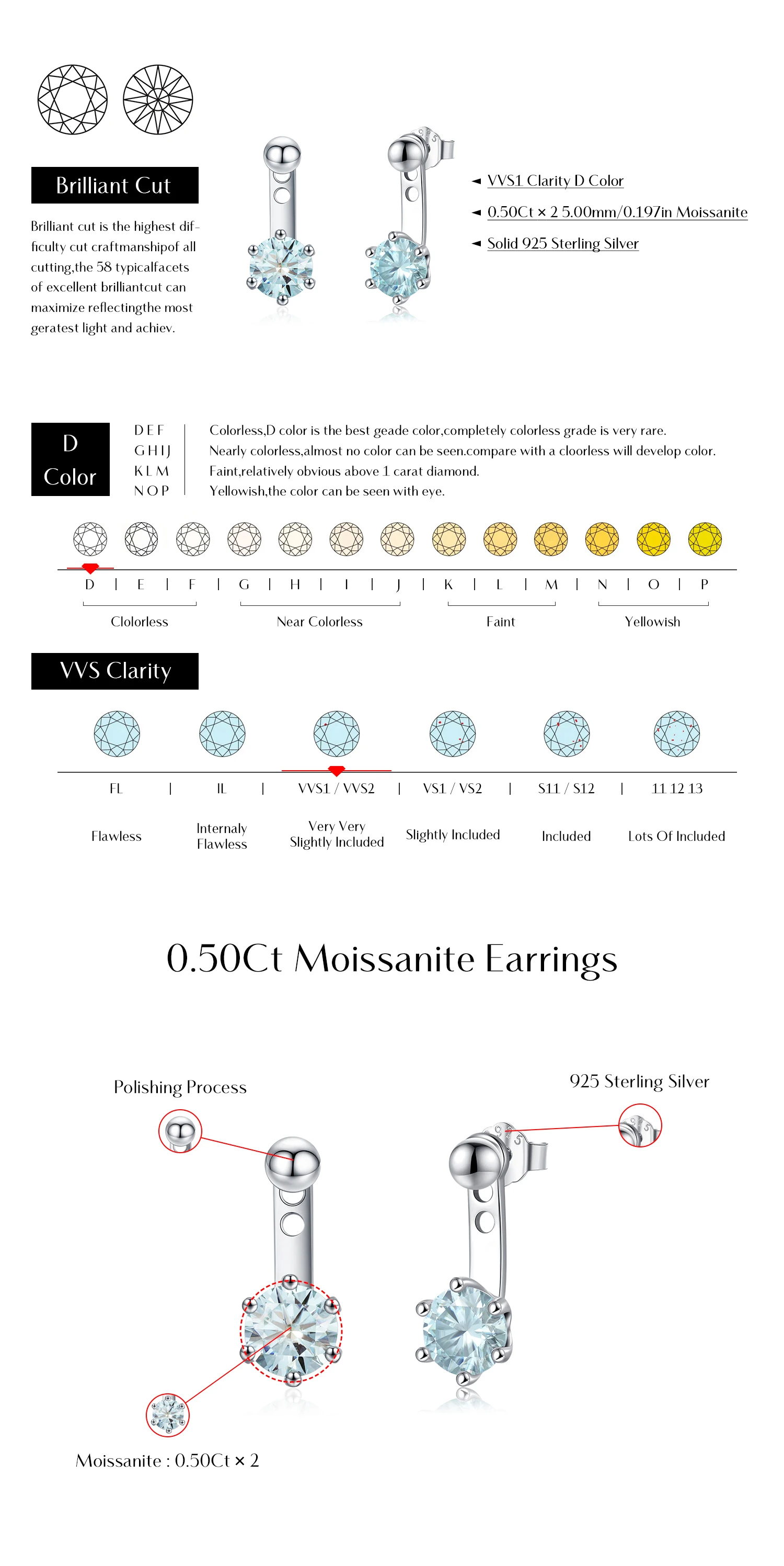 Earrings Main Stone Weight/Pairs:Moissanite Diamond 0.50 Carat × 2