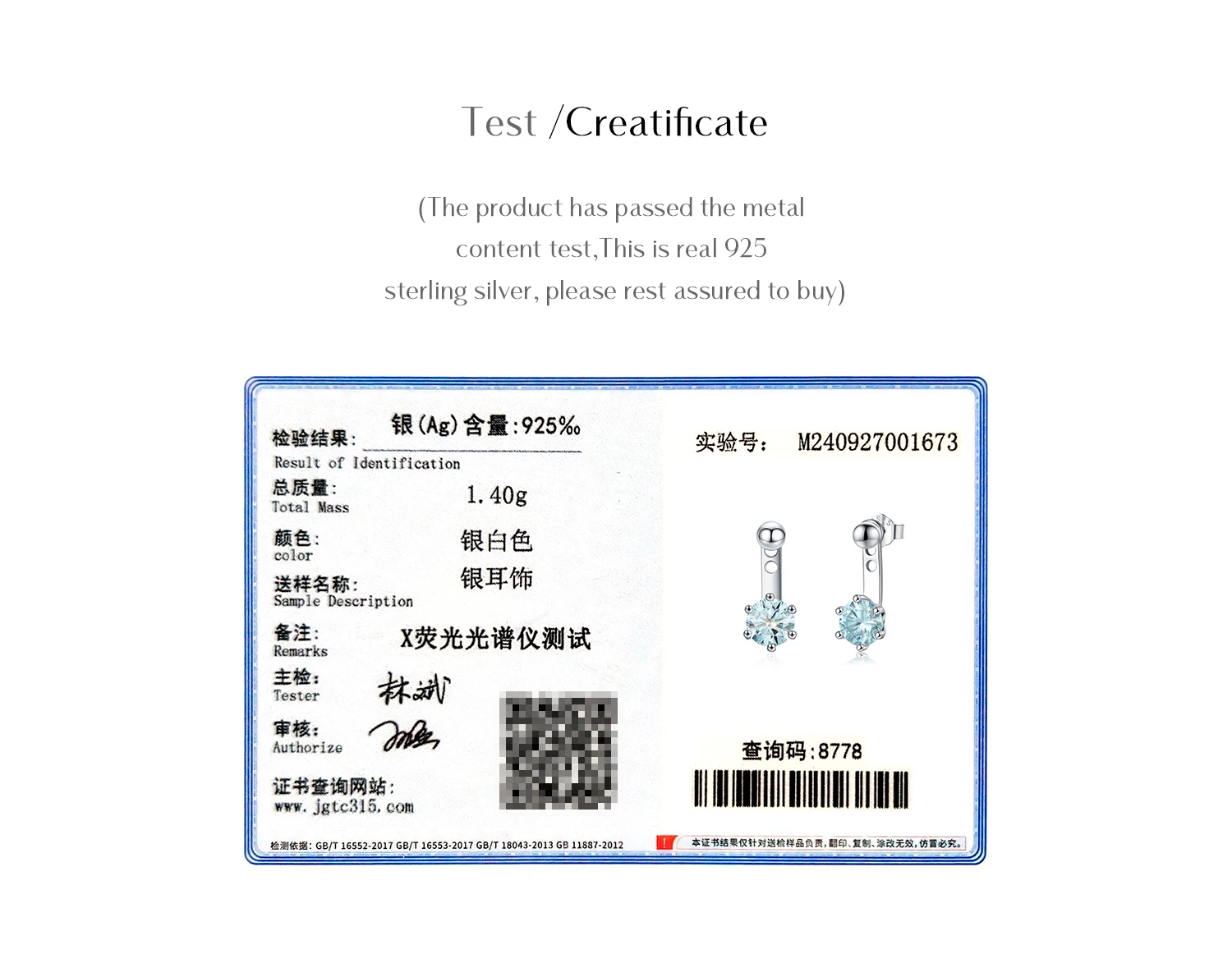 Material: 925 Sterling Silver + GRA Moissanite