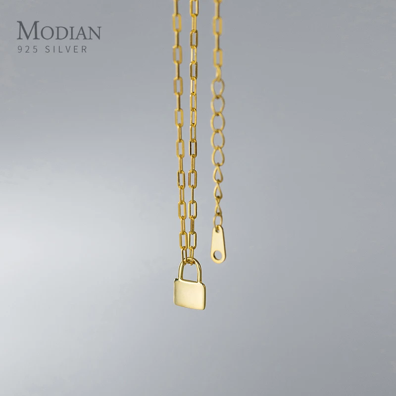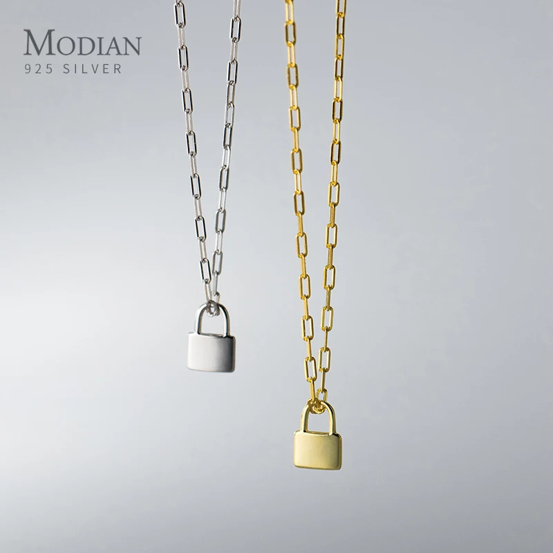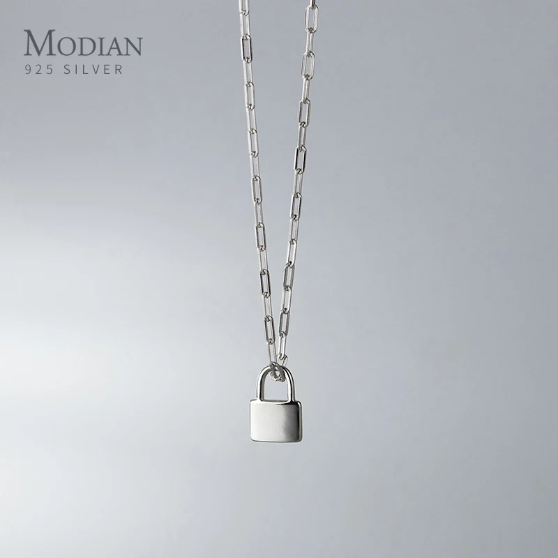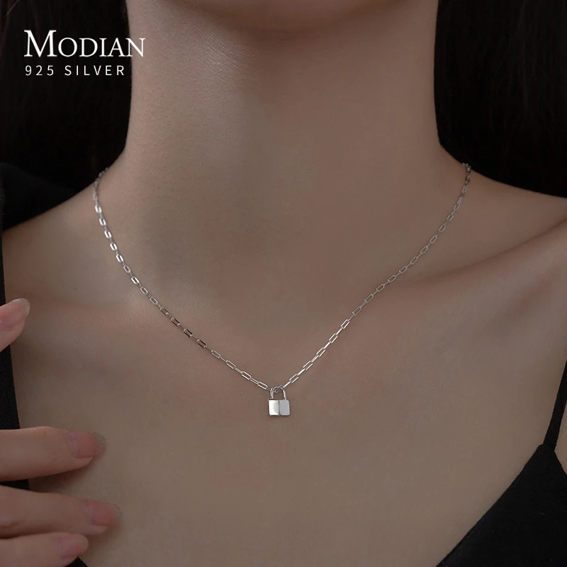 Modian Fashion 925 Sterling Silver Simple Tiny Necklace Link Chain Lock Key Pend …
