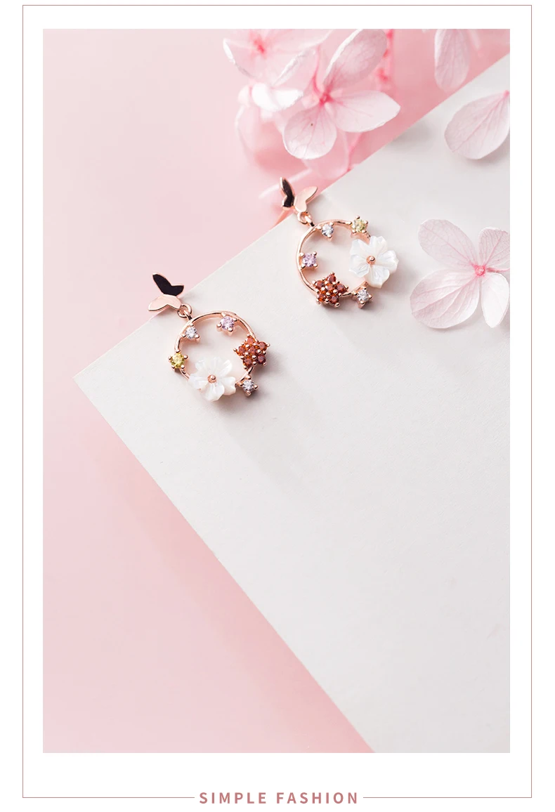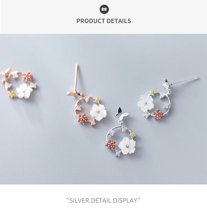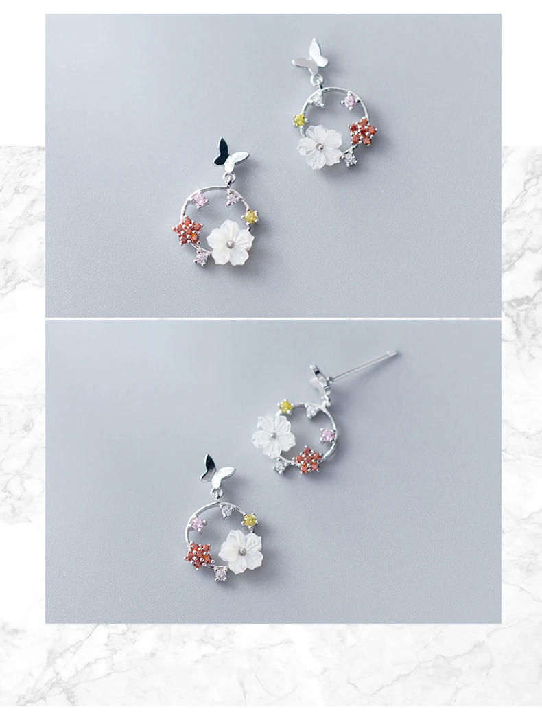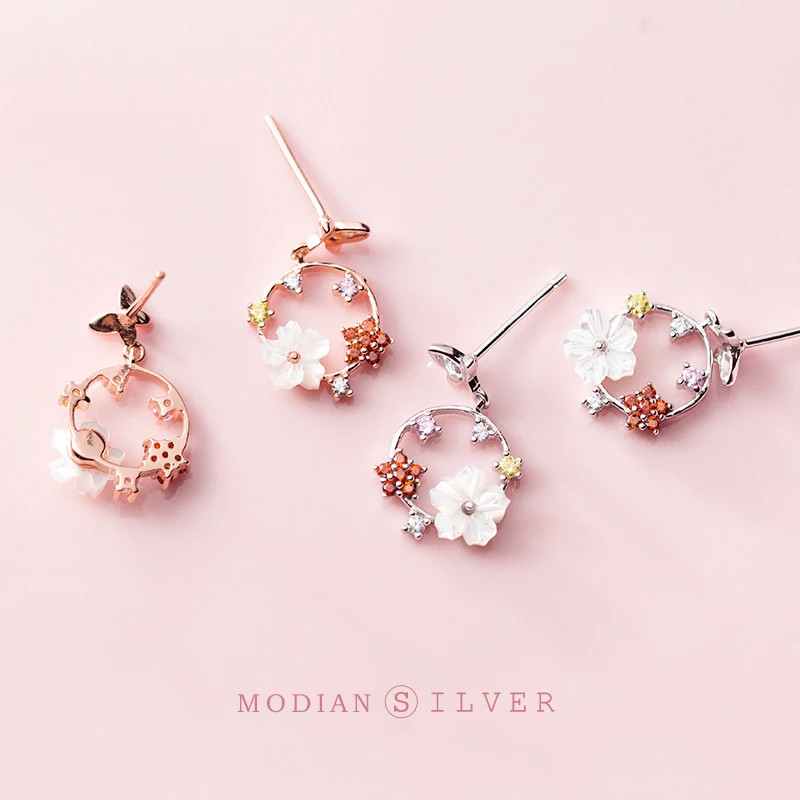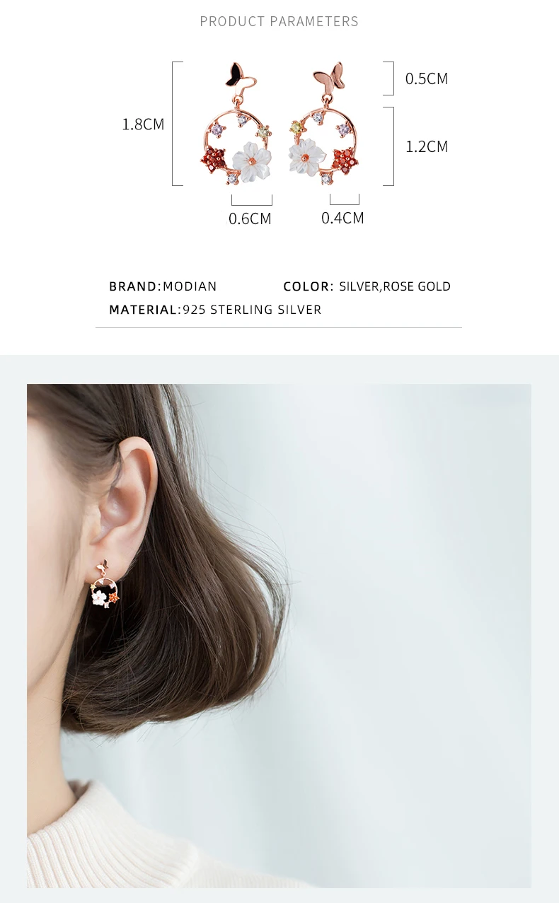 Modian Fashion Butterfly Round Enamel Flower Drop Earrings Charm 925 Sterling Si …