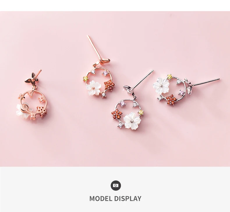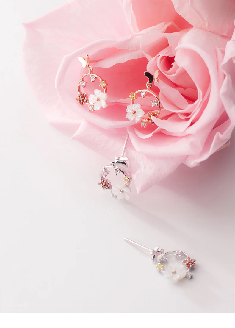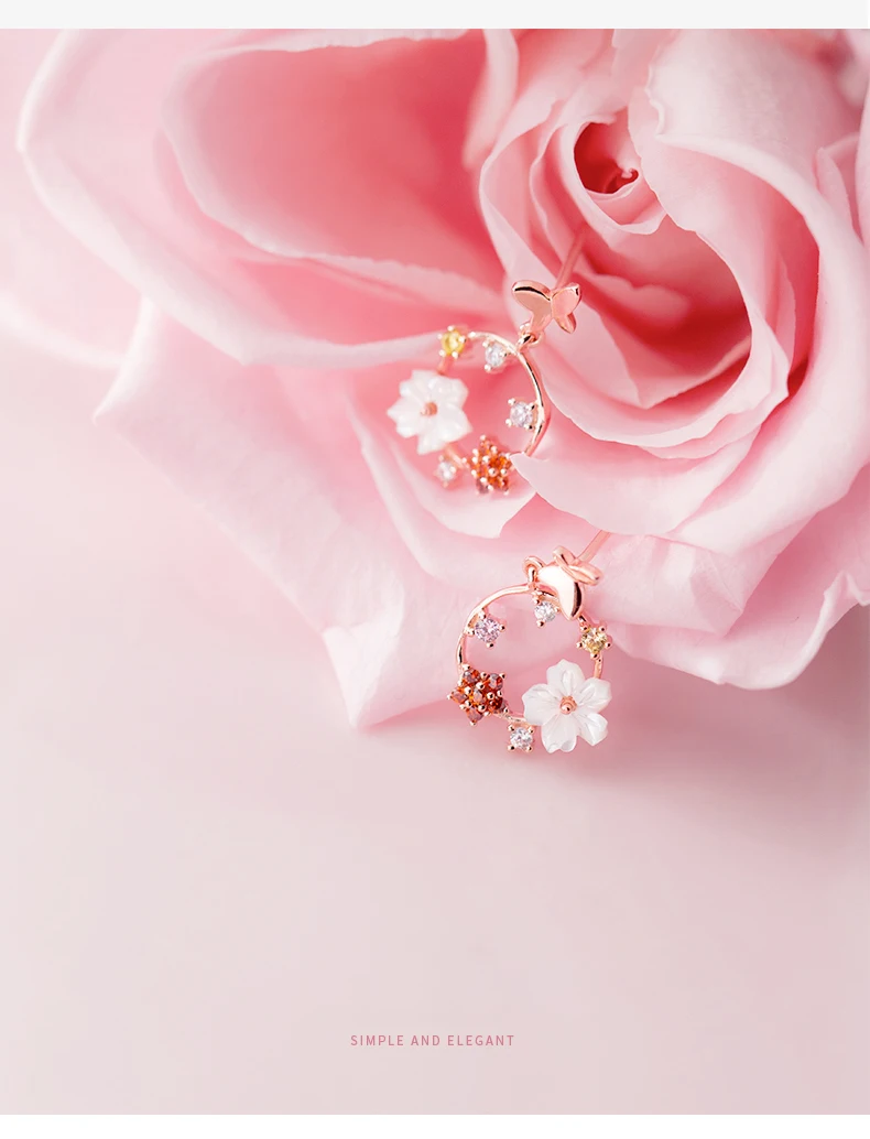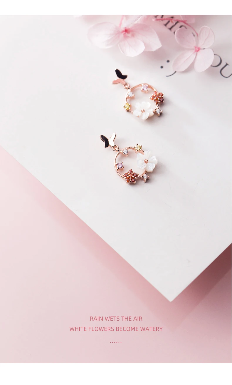 Modian Fashion Butterfly Round Enamel Flower Drop Earrings Charm 925 Sterling Si …
