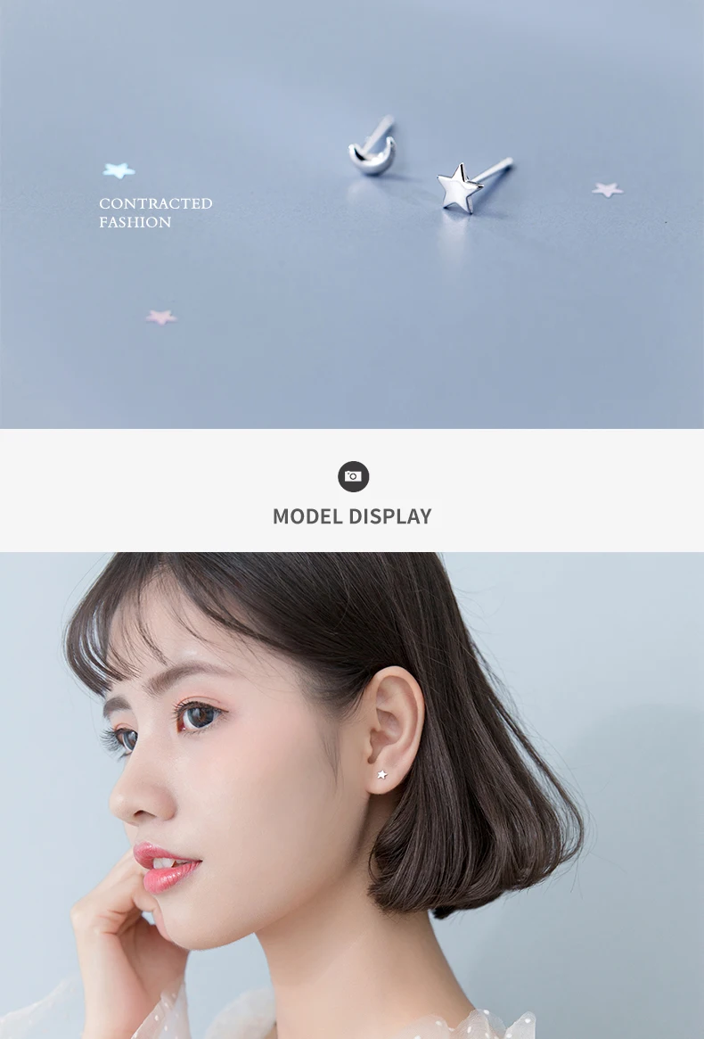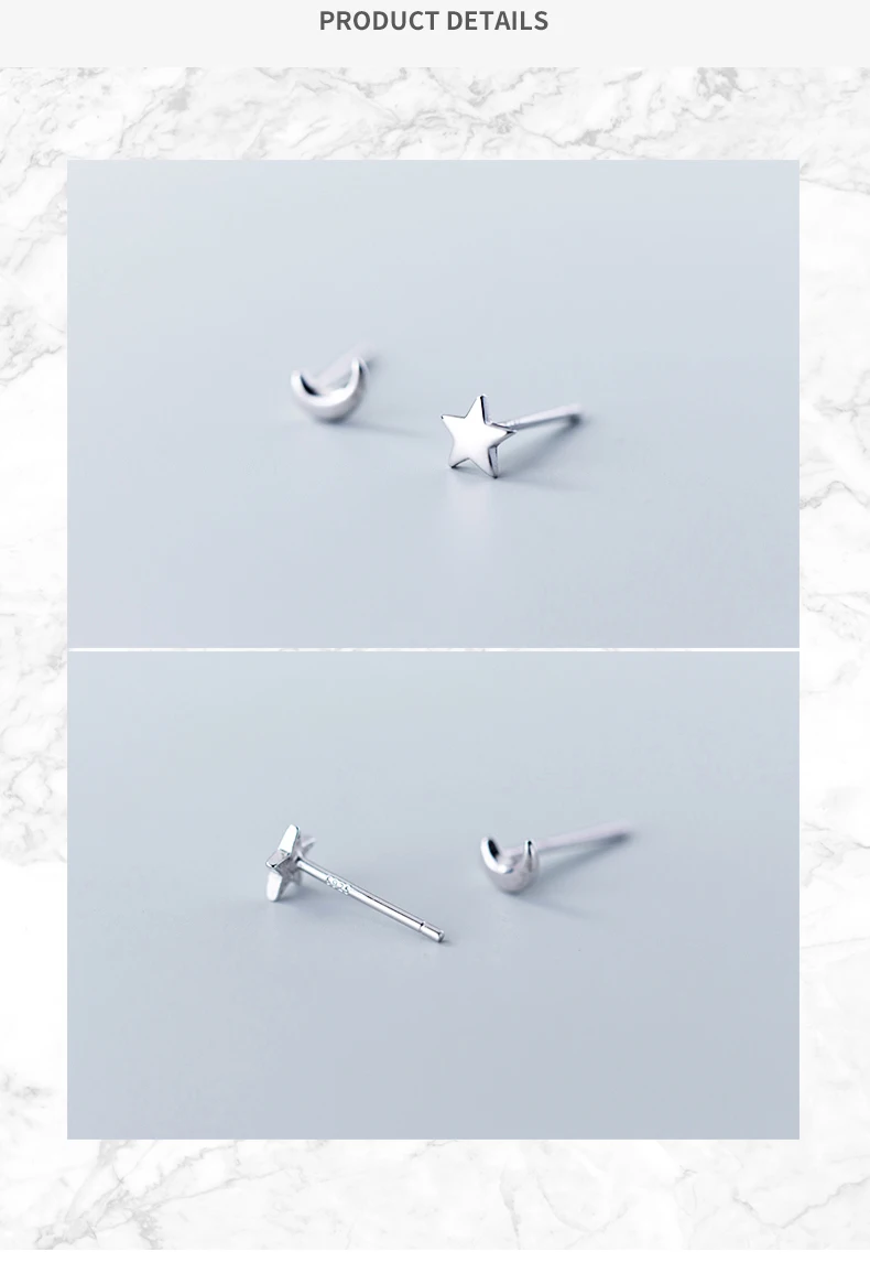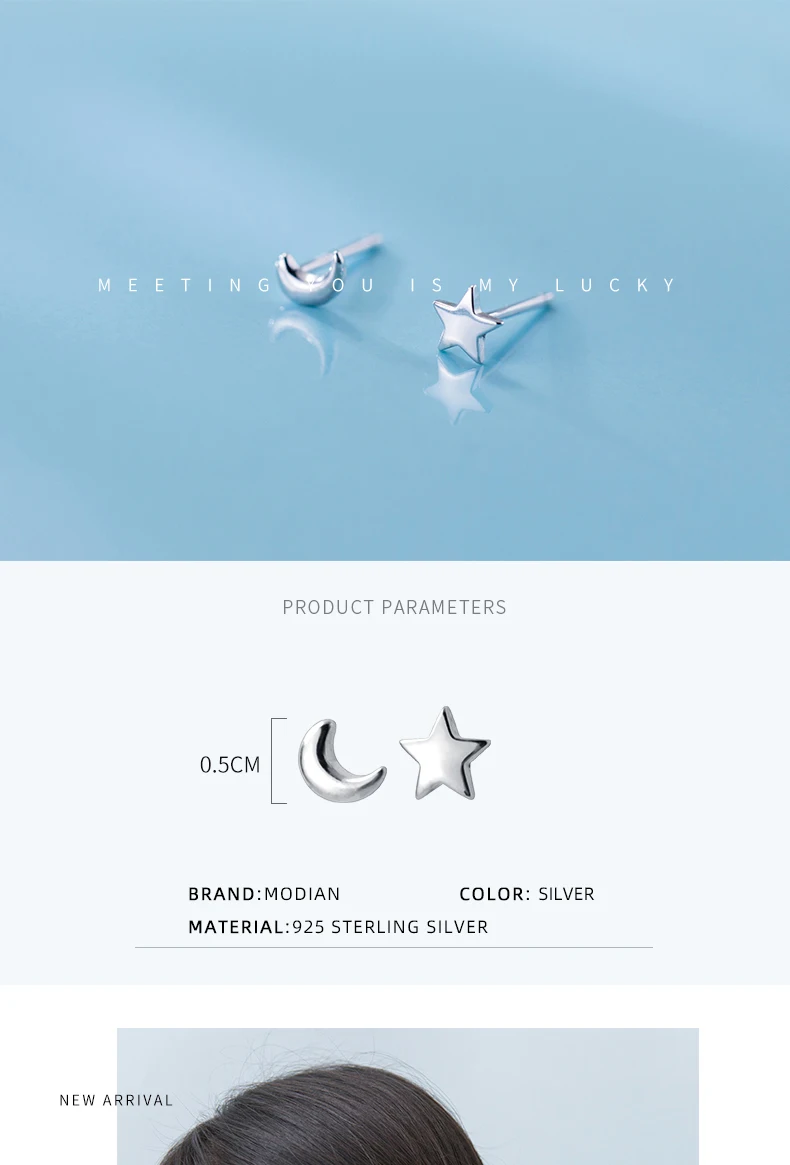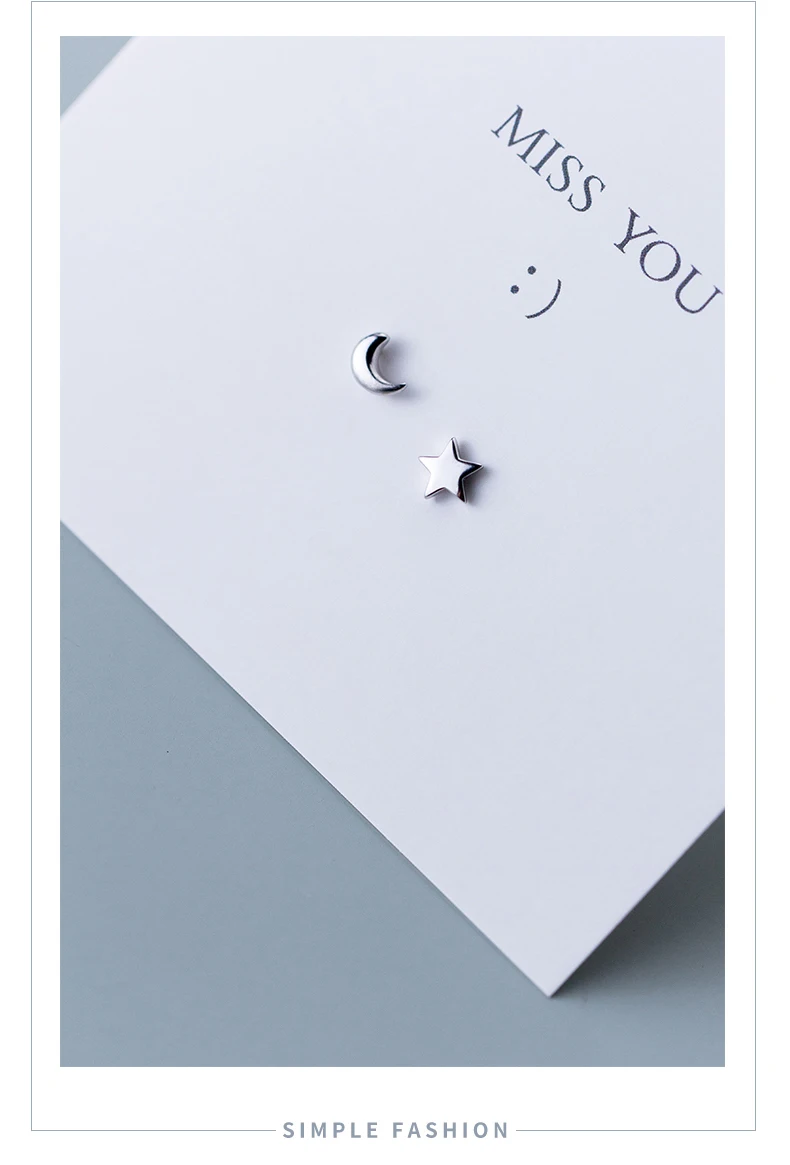 Modian Fashion Minimalist Star Moon Asymmetry 100% 925 Sterling Silver Anti-Alle …