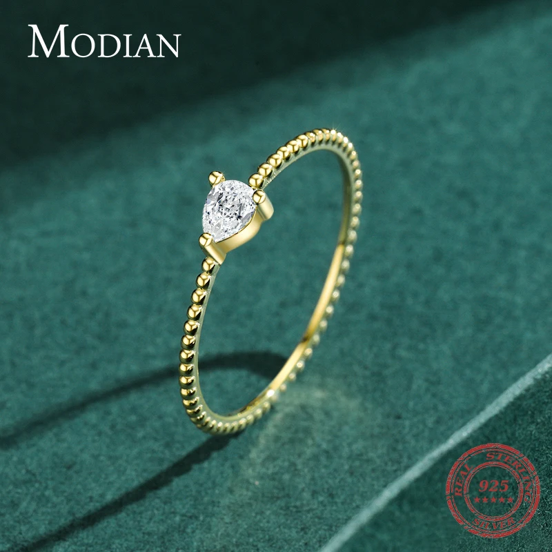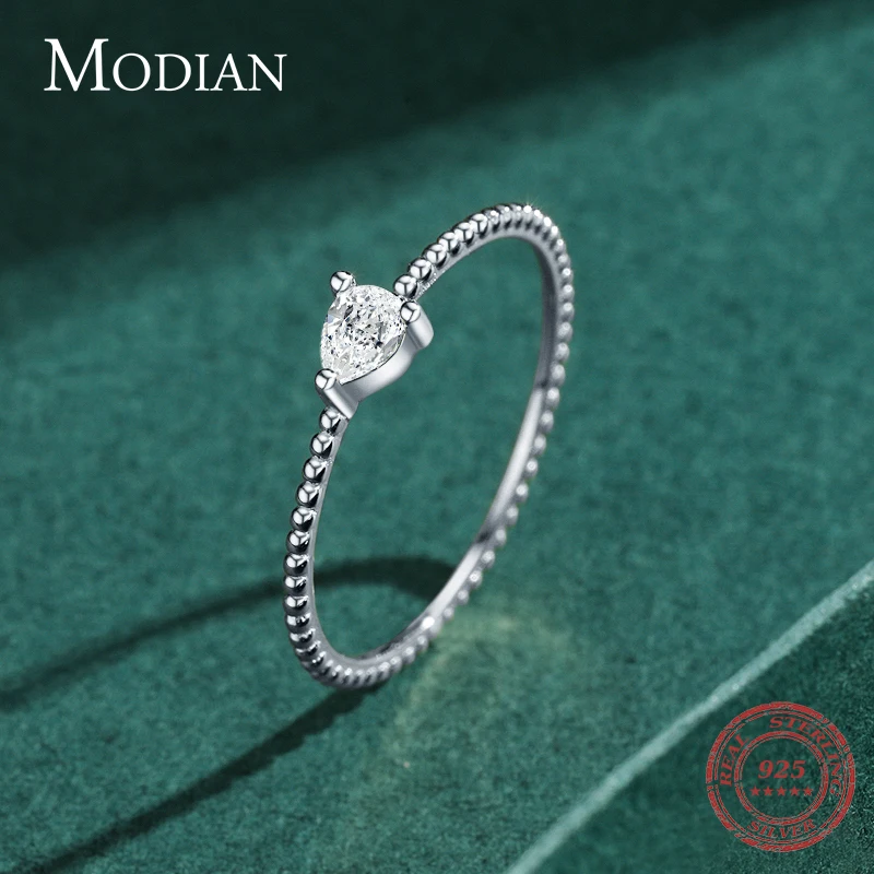 MODIAN Genuine 925 Sterling Silver Beads Band Small Water Drop Shape CZ Rings Fo …