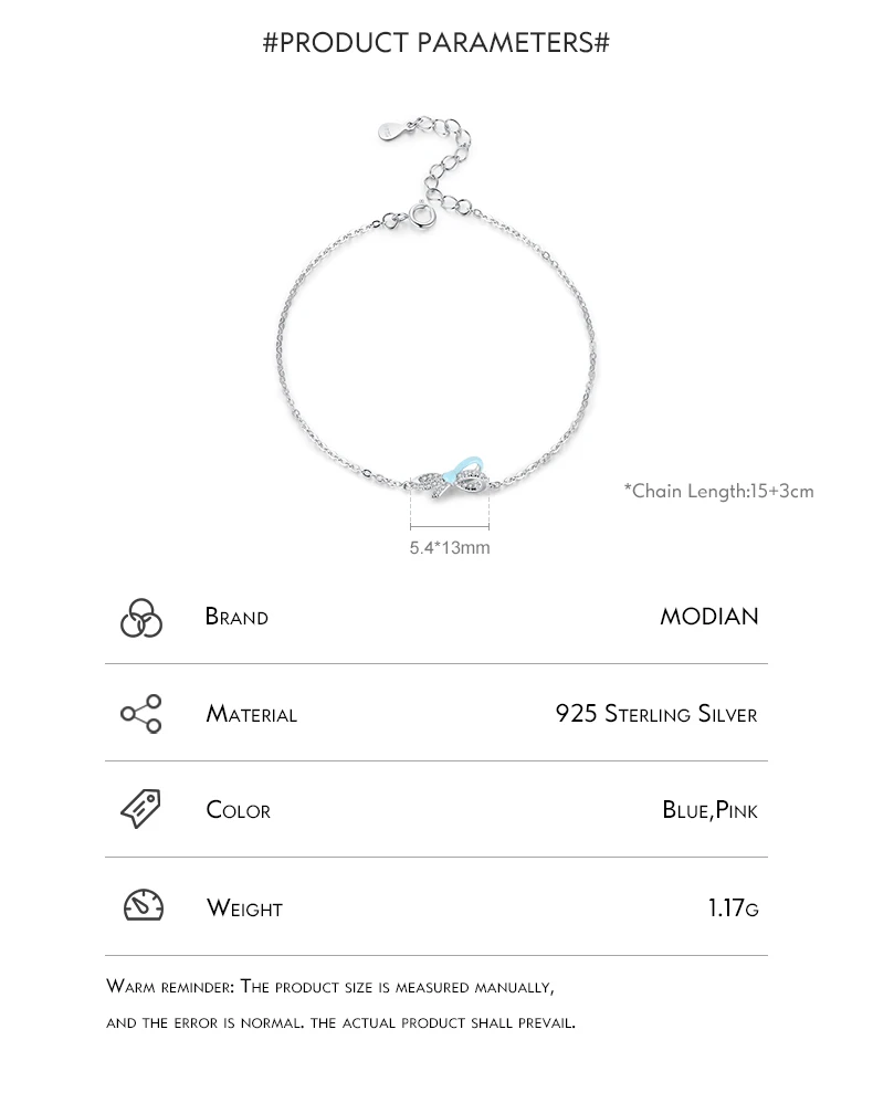 Be the first to review “Modian Genuine 925 Sterling Silver Simple Cute Bowknot Enamel Adjustable Bracele …”