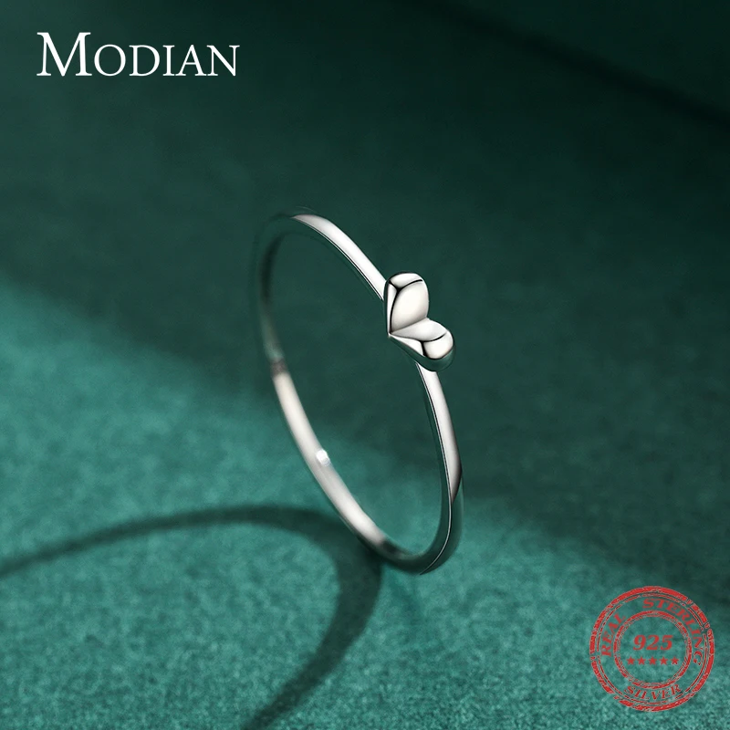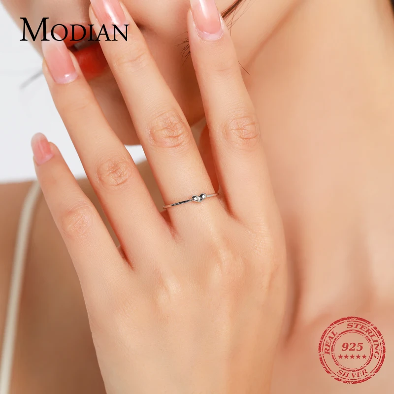 Modian Minimalist Real 925 Sterling Silver Cute Heart Trendy Finger Ring For Wom …