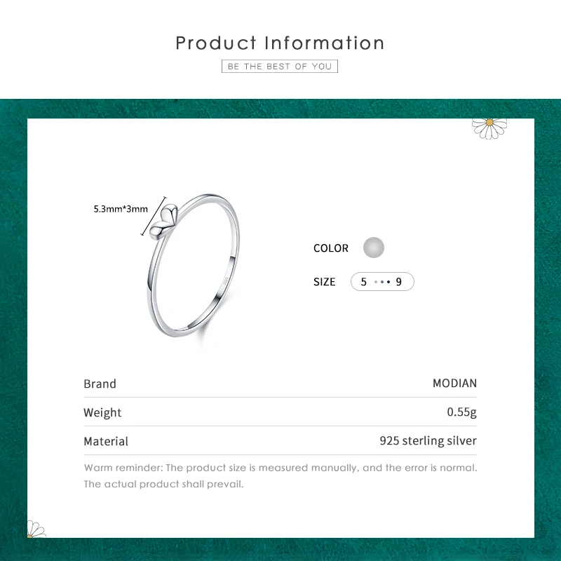 8 reviews for Modian Minimalist Real 925 Sterling Silver Cute Heart Trendy Finger Ring For Wom …