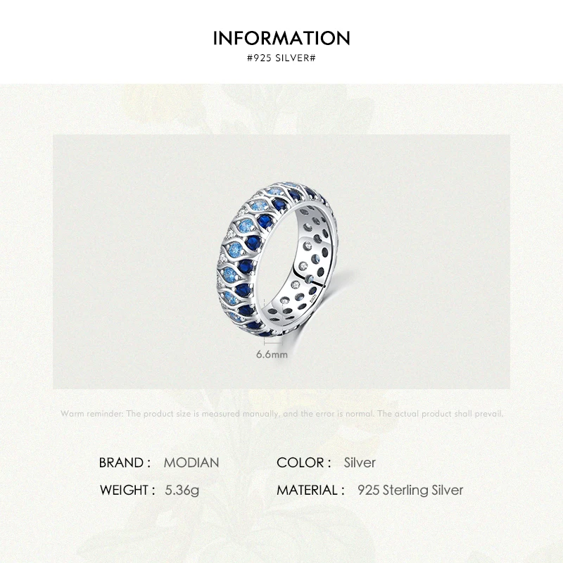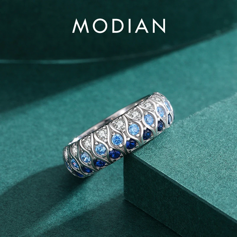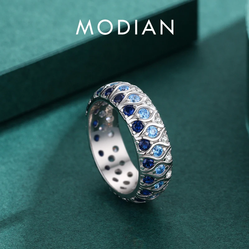 MODIAN New 925 Sterling Silver Luxury Gradient Blue Eyes Stackable Eternity Band …