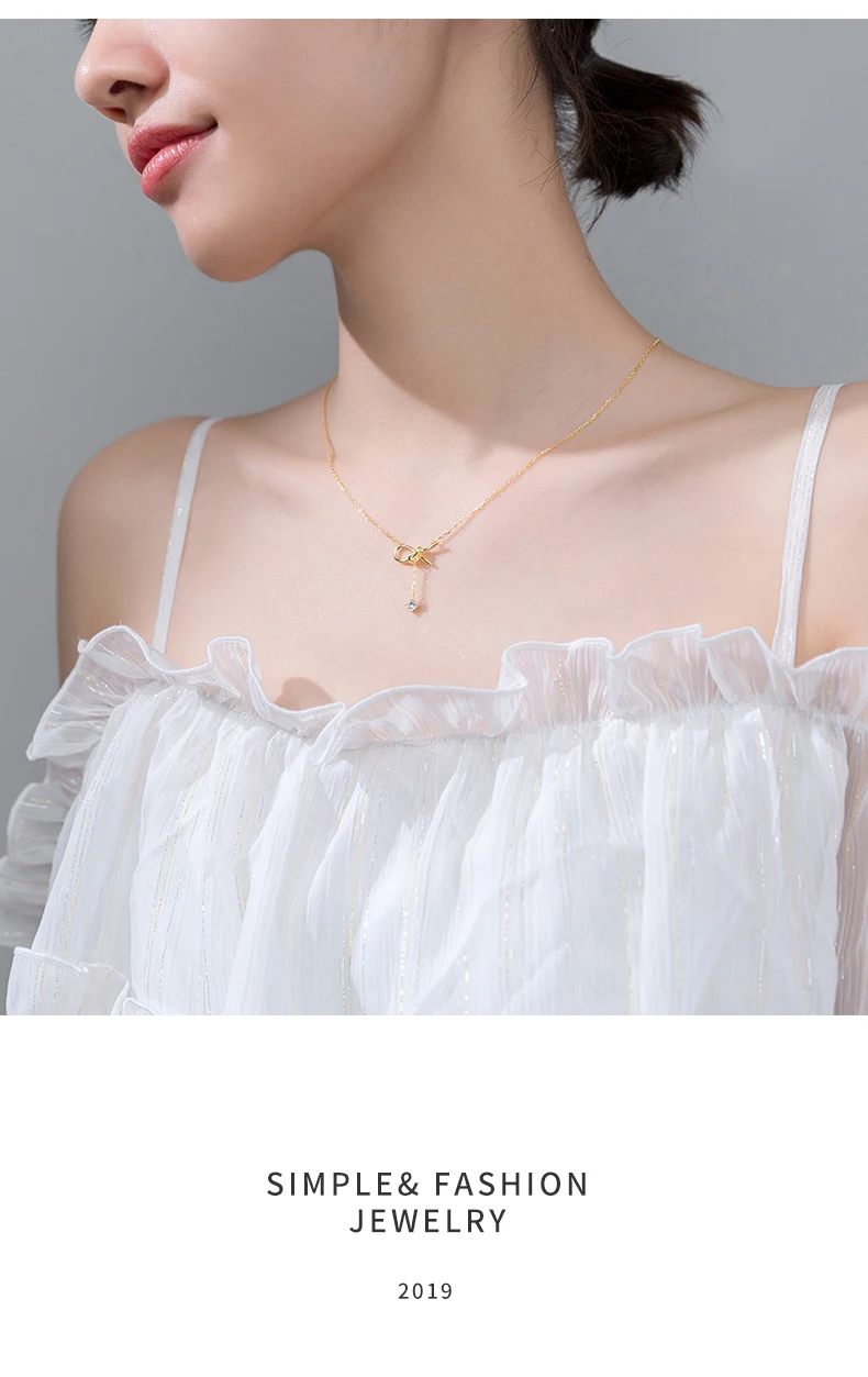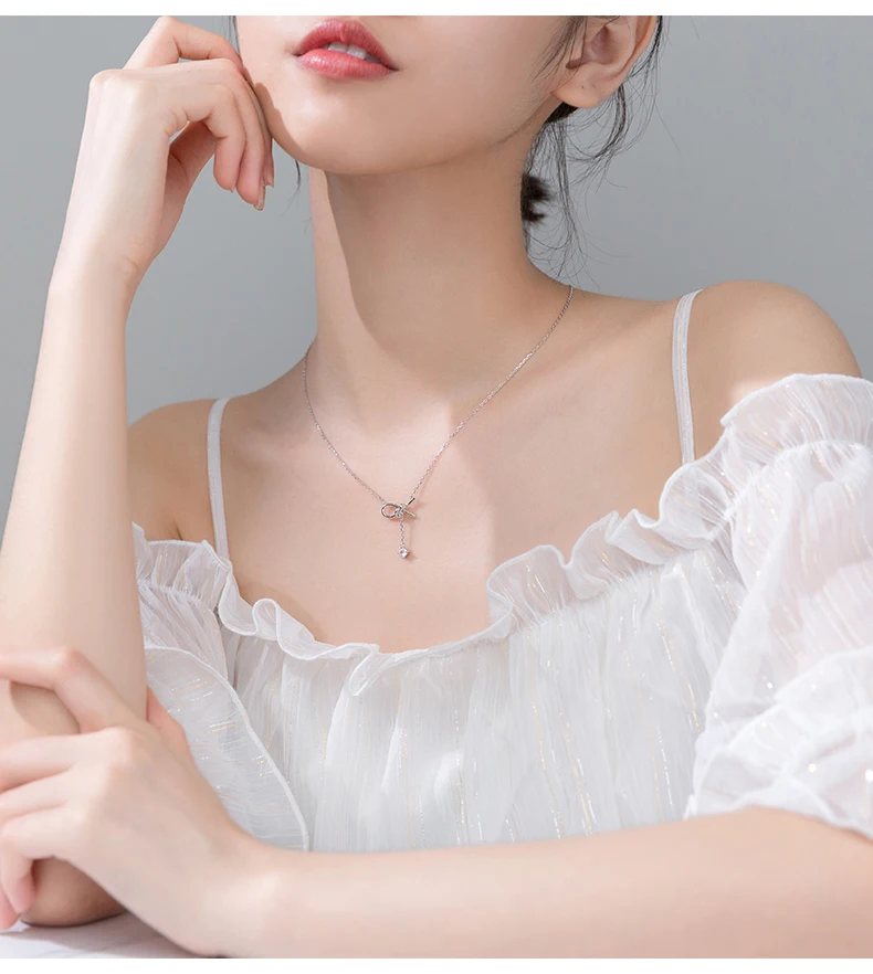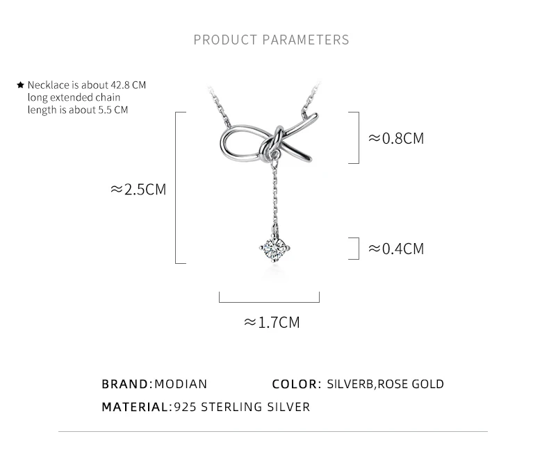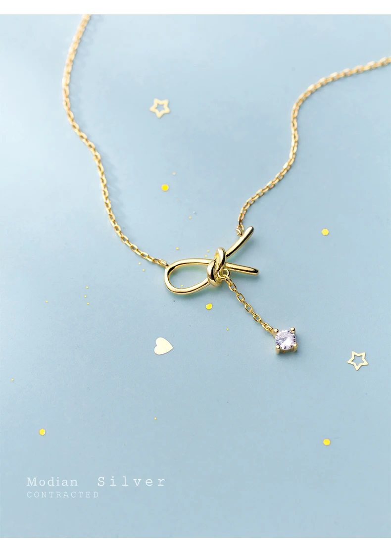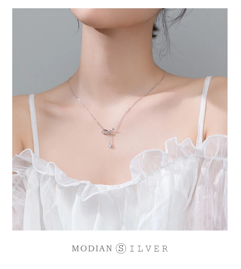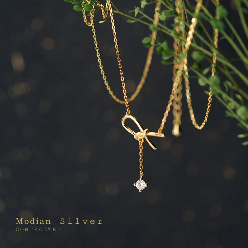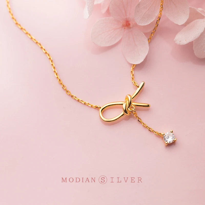 Modian Original Bowknot Swing Sparkling Pendant Classic Brand 925 Sterling Silve …