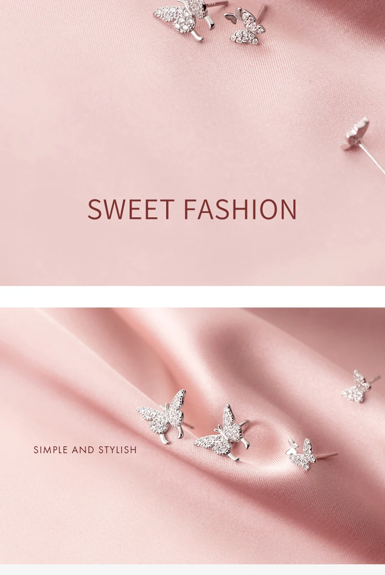 4 reviews for Modian Pure 925 Sterling Silver Clear CZ Sweet Cute Flying Butterfly Stud Earrin …