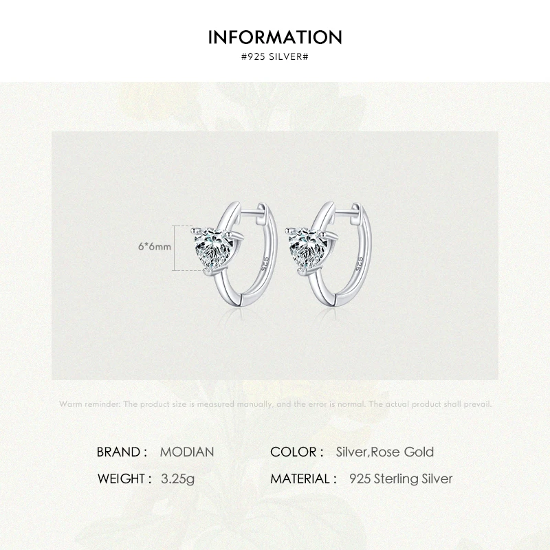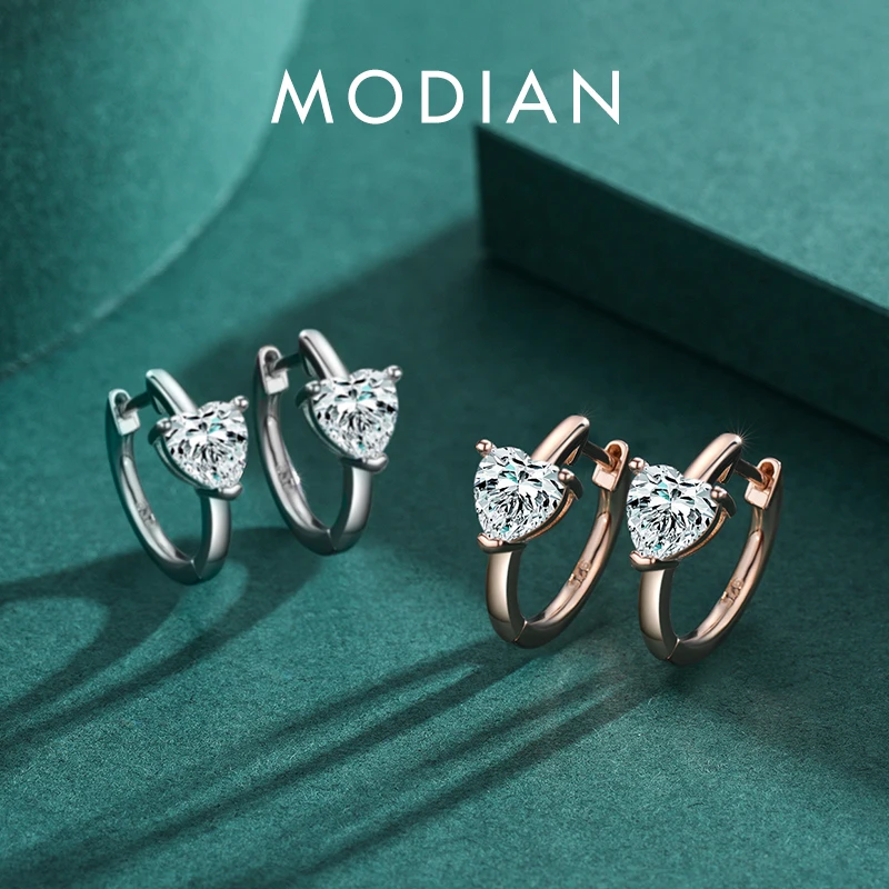 MODIAN Pure 925 Sterling Silver Romantic Heart Ear Hoops For Women Fine Zircon E …