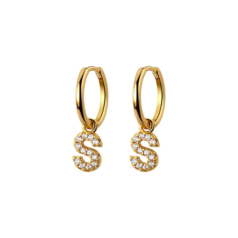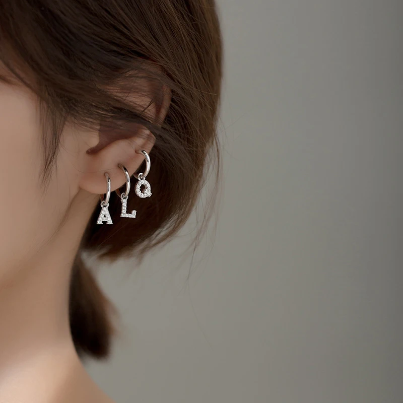 MODIAN Pure 925 Sterling Silver Sparkling Clear CZ Hoop Earrings 26 Letters Ear …